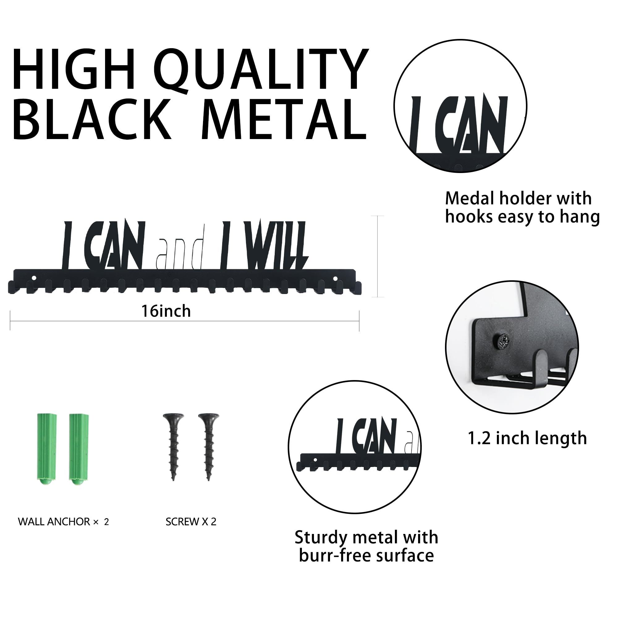 🛡️ Family-Safe & Durable Build - Rounded edges and powder-coated steel prevent scratches, supporting 60+ medals (3X thicker than standard hooks). Ideal for kids' rooms and gym walls.