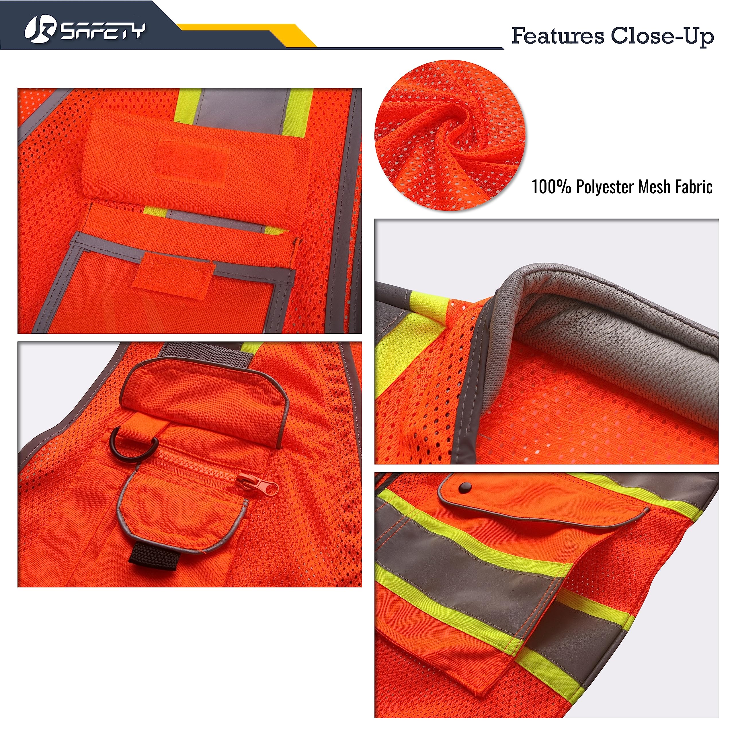Breathable Mesh with 9 Multi-Purpose Pockets: The JKSafety HV Safety Vest is made of 100% Polyester Mesh Fabric with a Cushioned Collar. The premium mesh fabric allows excess body heat to ventilate into the air, keeping your body cool during active physical tasks. The Cushioned Collar provides additional comfort while wearing the vest. It is lightweight and machine washable in cold water, making it the ideal work gear PPE for both men and women.