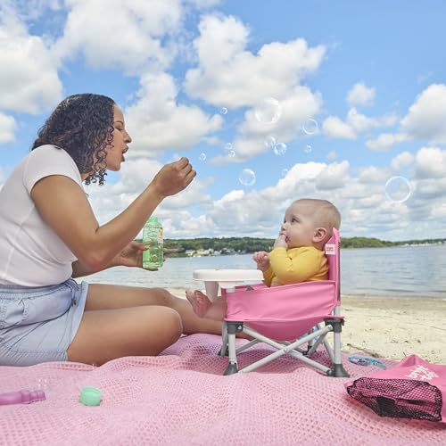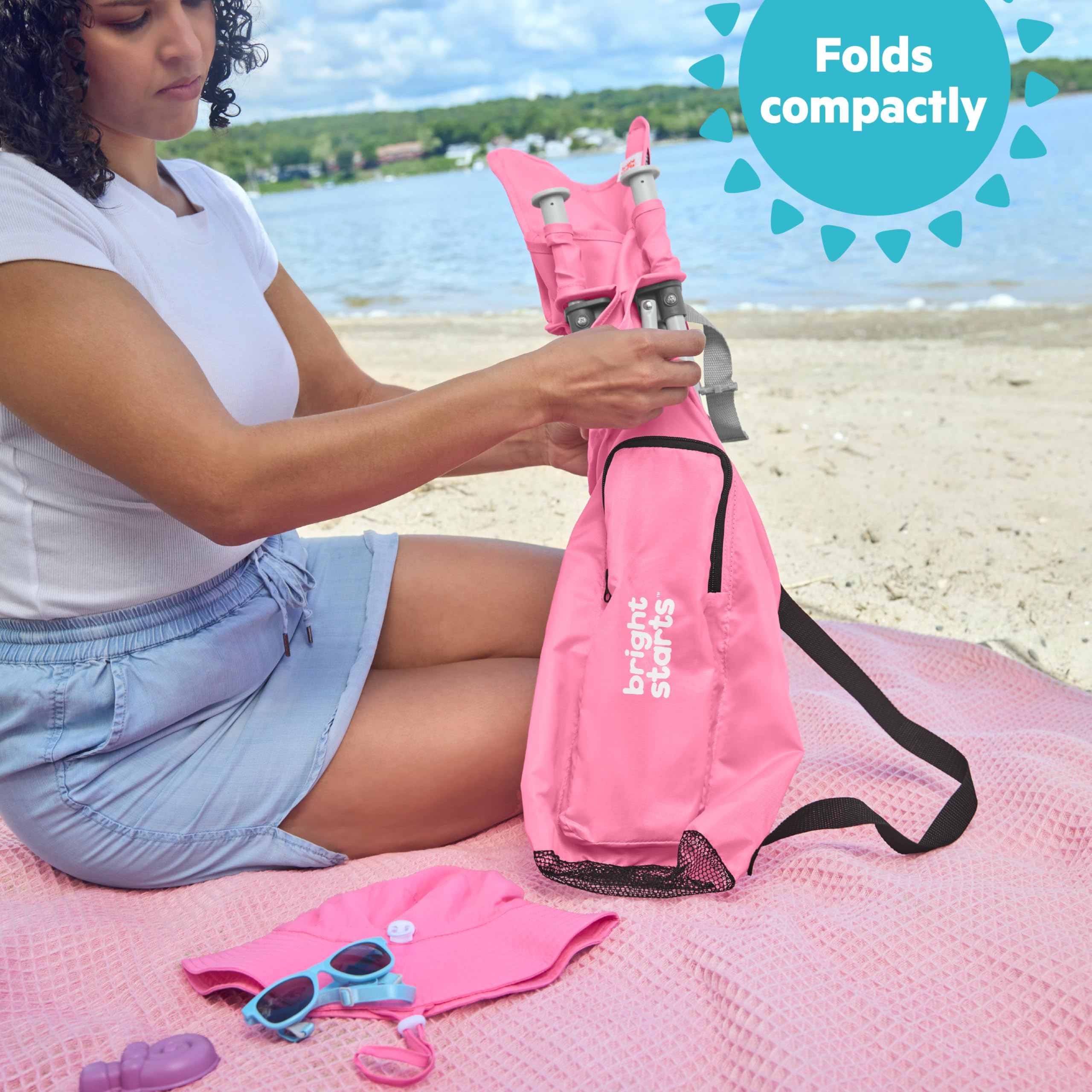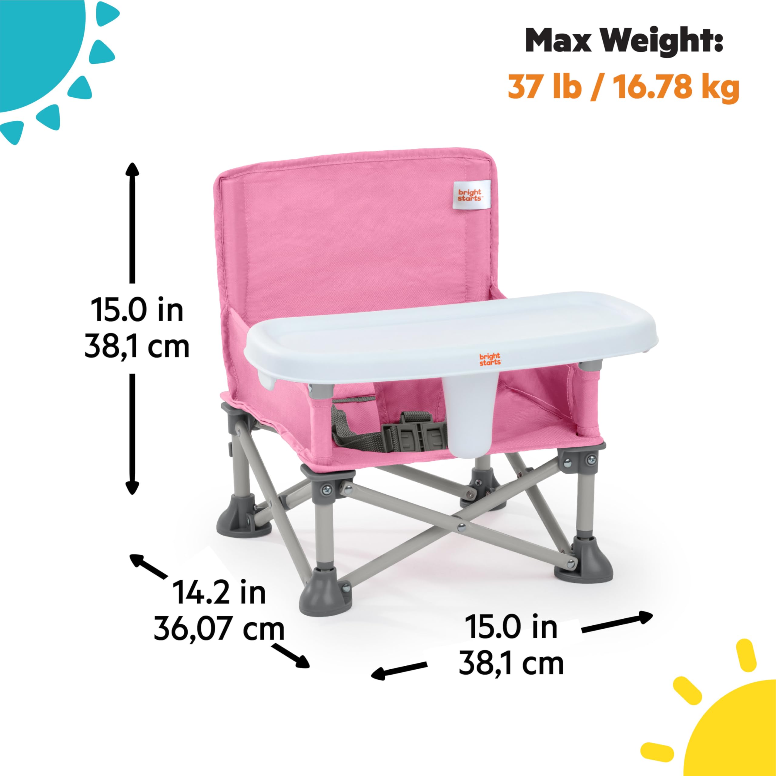 The original Pop N Sit from Bright Starts is the ultimate go & grow seat, with over 2 million sold! From inside to out, baby to toddler, and mealtime to playtime, this multi-purpose travel booster offers your little one a secure place to sit. This #1 Booster Seat* from the #1 Manufacturer of Feeding Boosters** has 3 modes of use: floor seat, feeding seat with removable tray, and toddler booster. For babies, attach to an adult chair using the included straps and BPA free tray to create a portable chair top high chair. For toddlers, use the seat as a booster that can pull up to the table by removing the tray. In floor mode, you can use the Pop N Sit whenever you need an extra seat - picnics, sporting events, or right at home! The rear storage pocket holds your daily essentials. Folds compactly when not in use and includes a carrying bag with shoulder strap. Dishwasher safe tray and machine washable seat pad. Fold dimensions: 15 x 13.5 x 14.75 or 5 x 15. Made for 6 months to 3 years old or up to 37 pounds. Gender neutral pink color. No tools required for assembly. (*Circana, Retail Tracking Service, U.S., Highchairs-Boosters, dollar sales, Jan-Nov 2023 combined); **Circana, Retail Tracking Service, U.S., Highchairs-Boosters, dollar sales, 12 months ending October 2023)