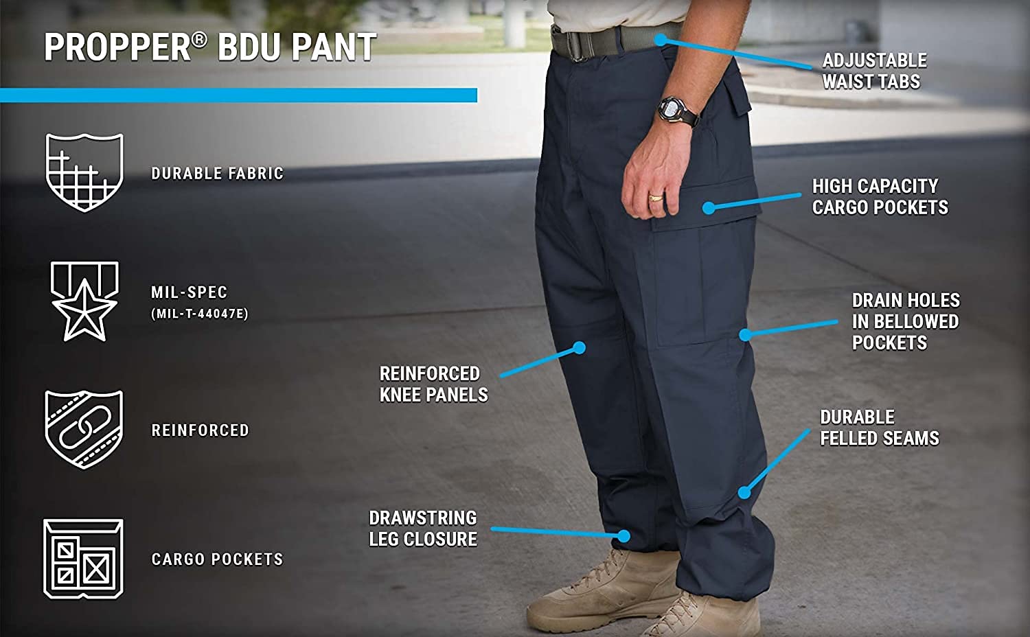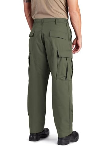 Description The Proper BDU trouser is authentic in every way. Sewn to military specification, This button-fly BDU features felled seams and reinforced Seat and knee for maximum durability. Six pockets with fused pocket flaps ensure a clean, professional look. With adjustable waist tabs and durable drawstring leg closures for a secure fit.