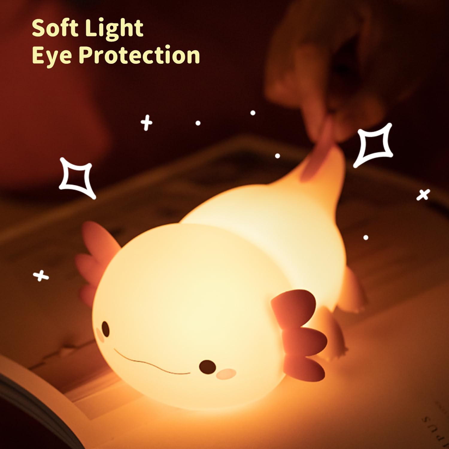Best Gifts Choice and Wide Use: Perfect Birthday, Christmas and Easter Gift for Kids Girls Boys Baby Nursery Toddler Adults. It can be used for bedroom, study, baby room night decoration; Also suitable for outdoor camping, college dorm, party decoration or other places. Package includes: 1 Axolotl night Light, 1 USB charging cable, 1 user manual.