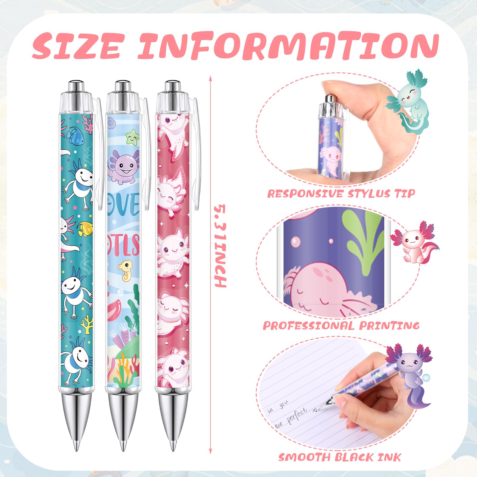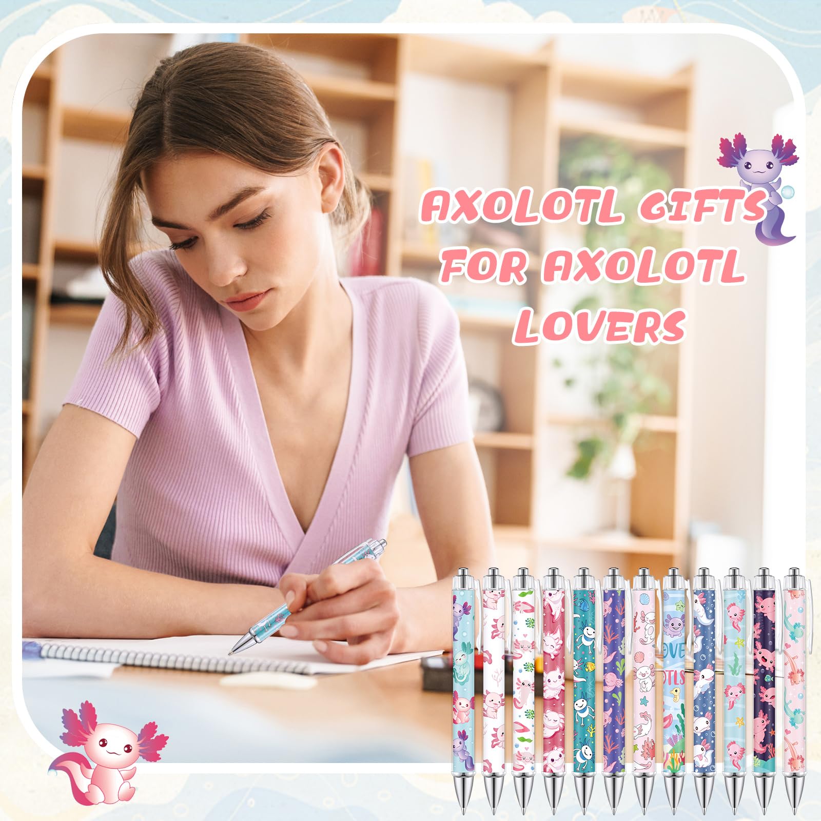 Sufficient Quantity: you will receive 12 axolotl ballpoint pens, 12 different designs, sufficient quantity and diverse styles, enough to meet your daily use and replacement needs, you can share with colleagues, families, they will love them
