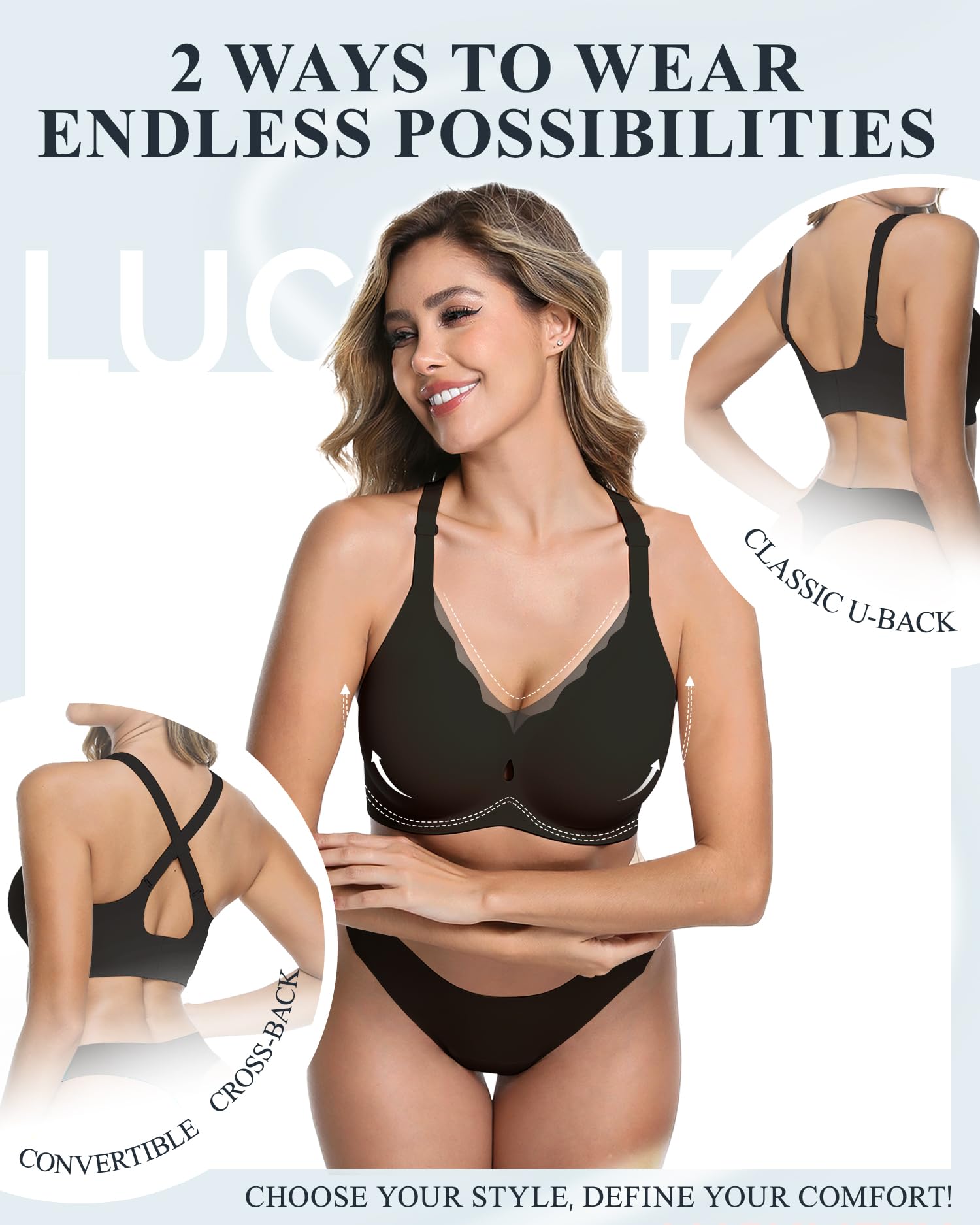 2-Way Convertible & Smoothing U-Back - The adjustable straps can be worn traditionally or crossed for versatility and better lift. The U-back design with wide side straps effectively conceals back fat and underarm bulges, ensuring a smoother look under all your outfits.