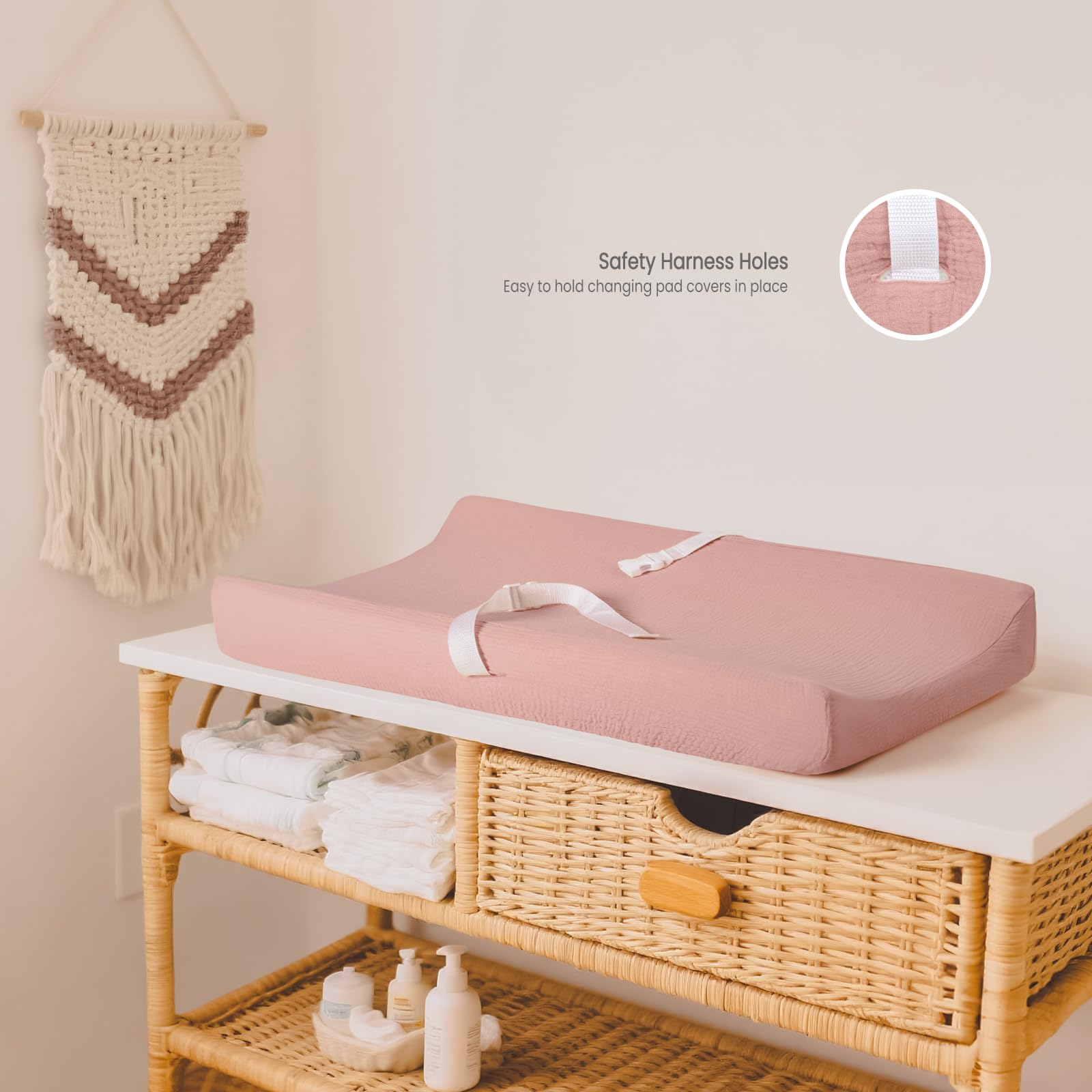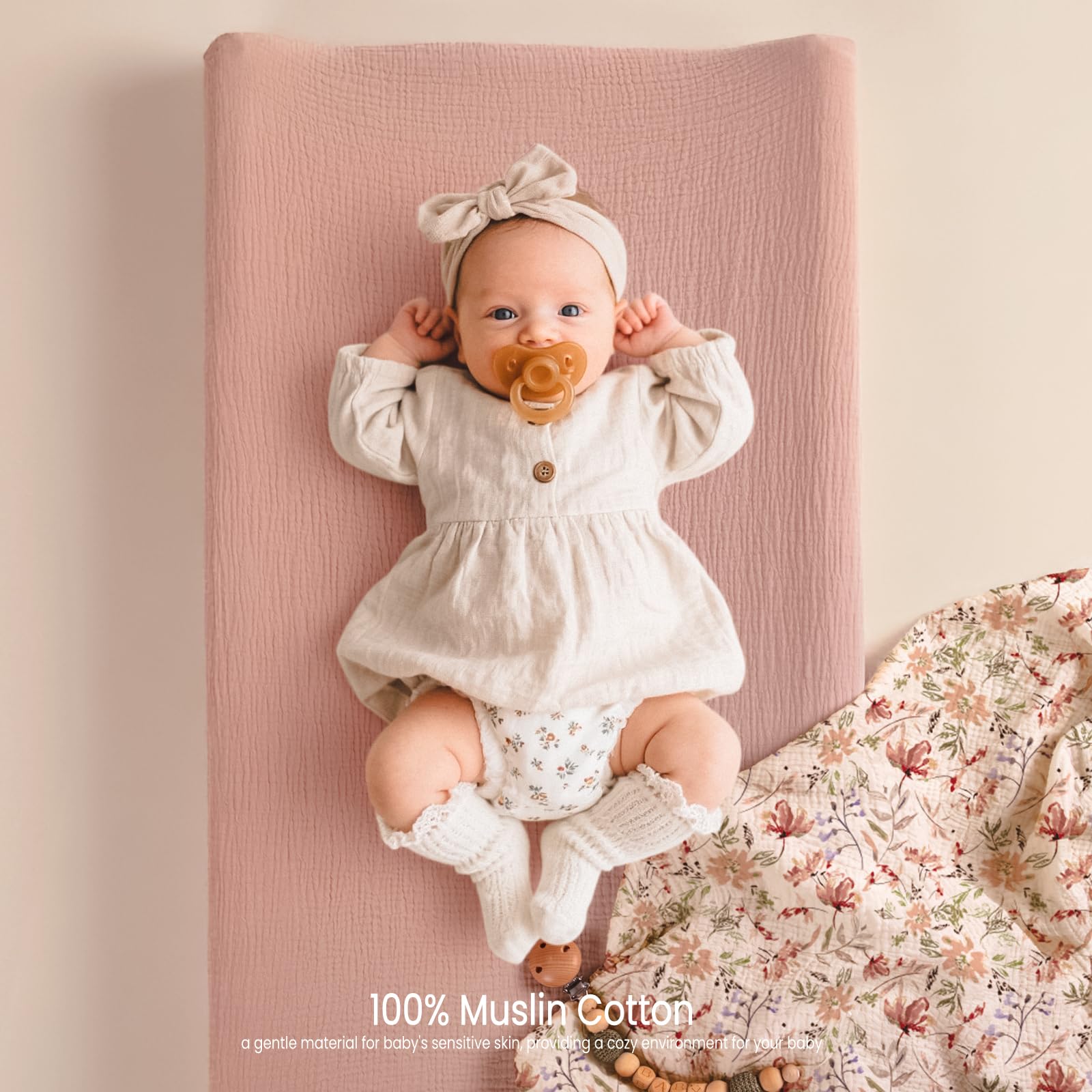 Soft & Breathable Muslin Cotton: Give your baby the comfort they deserve with our breathable muslin cotton changing pad cover. Its lightweight and ultra soft surface feels gentle against your baby’s sensitive skin, while the breathable weave promotes airflow to keep your little one cool and content during changes.