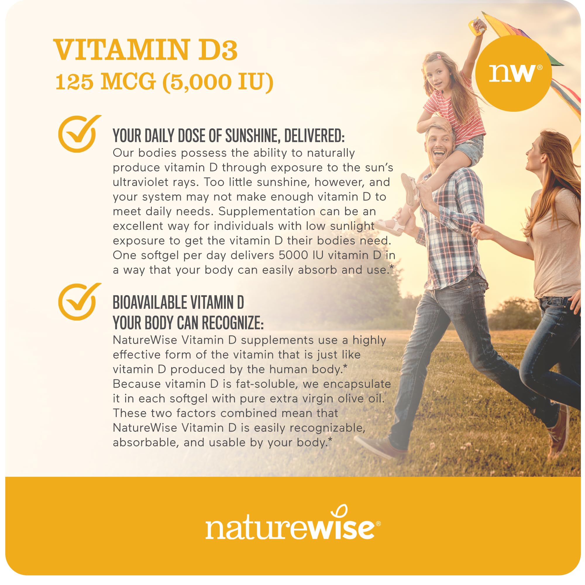 Product 2: Most active form: NatureWise Vitamin D3 gives you the same natural, biologically active form of Vitamin D that your body produces naturally from sunlight — but without the risky UVB exposure.