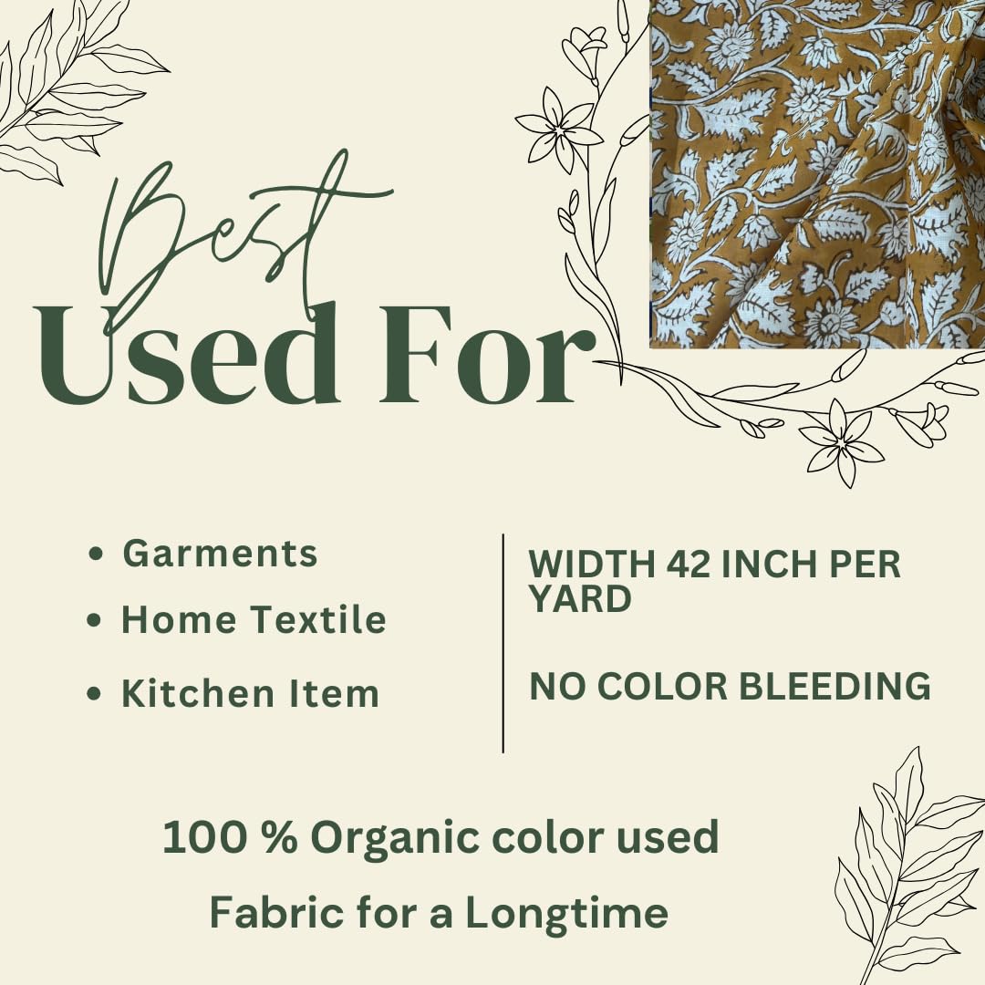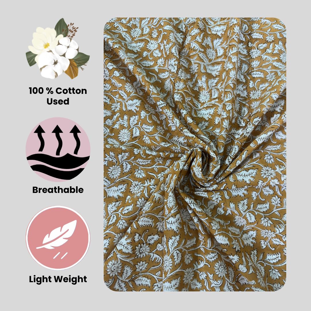 Hand Block Printed: Each design is carefully carved onto wooden blocks and printed by hand, giving the fabric a unique and authentic touch.