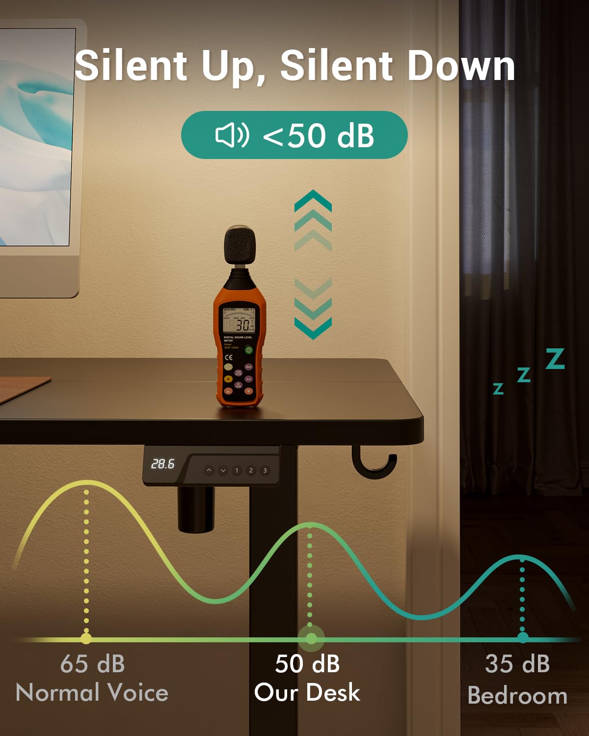 Smooth Height Adjustment: This adjustable desk is equiped with 6th Gen electric lift system allows you easily adjust the desk's height from 28.3" to 46.5"(noise levels below 45 dB when motor operates)