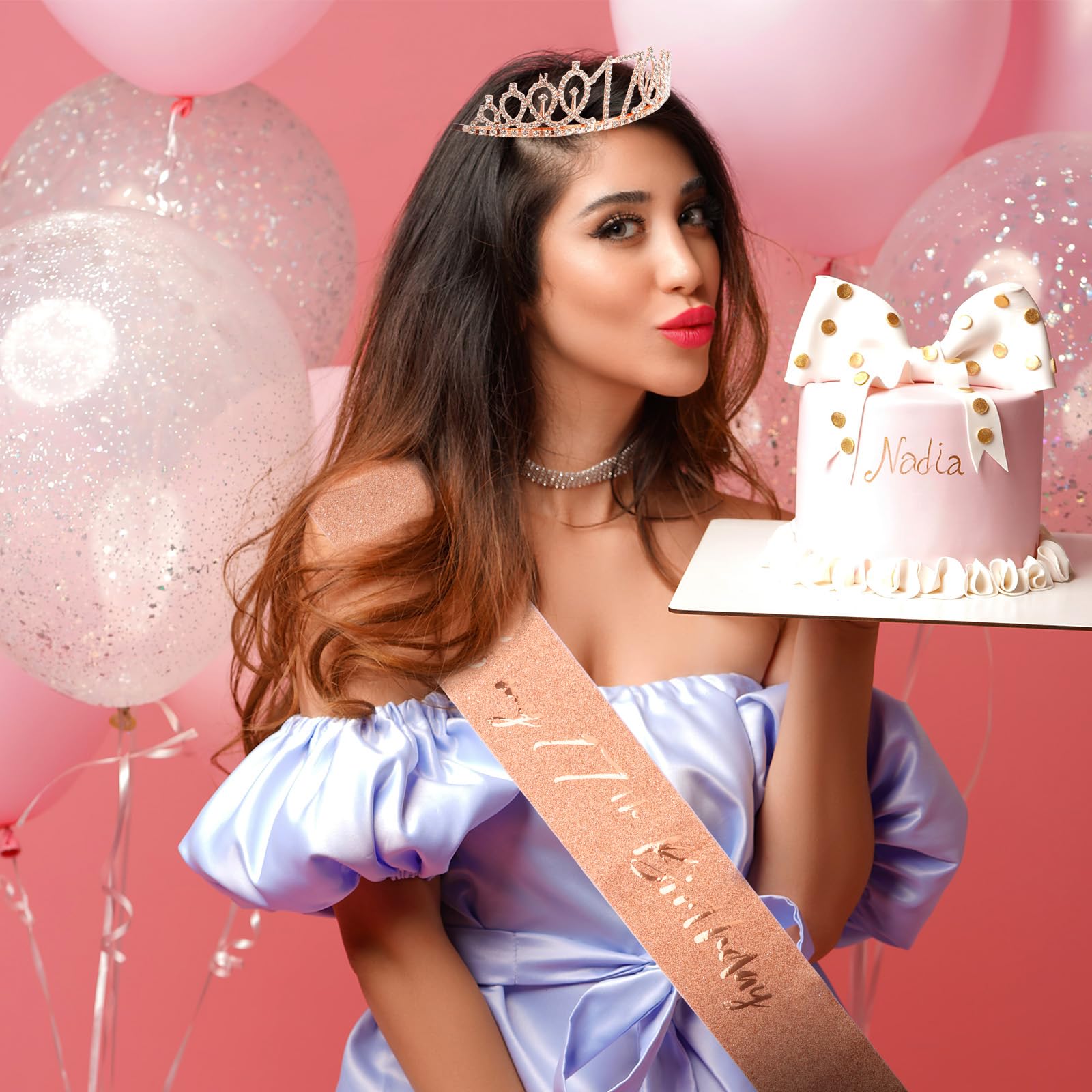 17th Birthday Sash. Birthday sash made from soft glitter fabric using hot pressed stamping foil will compliment any outfit and durable enough to last day into night. Rose gold glitter sash + rose gold lettering looks great on photos...It's perfect for those who obsesses over the perfect shot for Instagram.