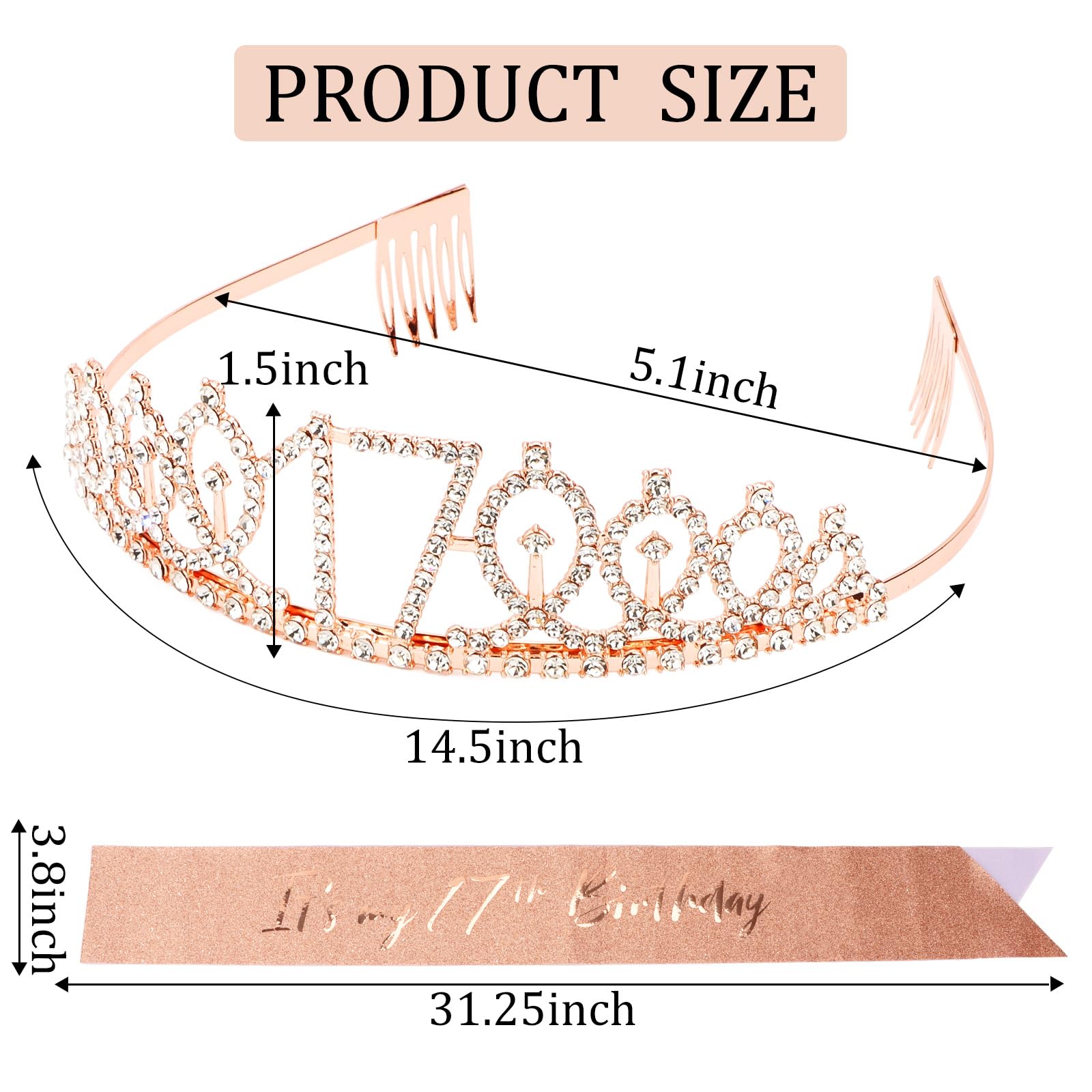 17th Birthday Crown. It is a dazzling and beautiful tiara for girls. With the shiny, attractive, beautiful rhinestones paved on the crown, your feeling like a princess when wearing it. Make the most stunning at any occasions decorated for the special birthday women.