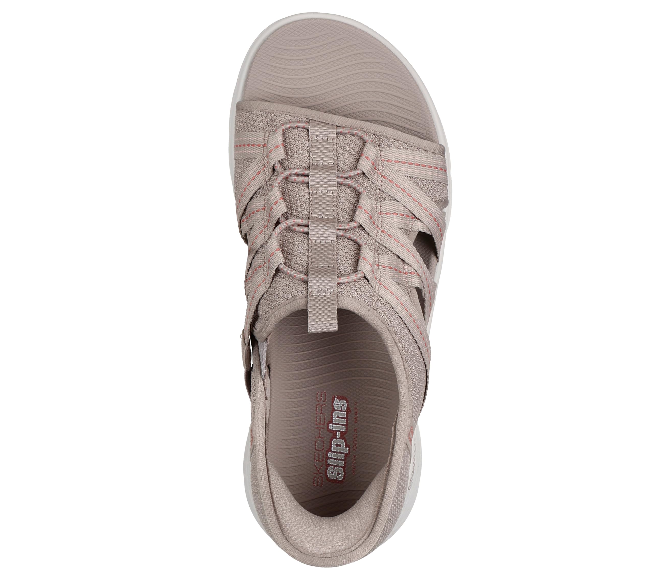 Description Step into comfort with these womens sandals from Skechers' GO WALK Flex collection. These sandals for women combine athletic performance with casual style, featuring a mesh and webbed upper design for breathability. The contoured Goga Mat footbed and Ultra Go cushioning deliver exceptional comfort for all-day wear. Perfect for walking or casual outings, these versatile sandals offer hands-free convenience with their slip-on design and secure back heel piece.