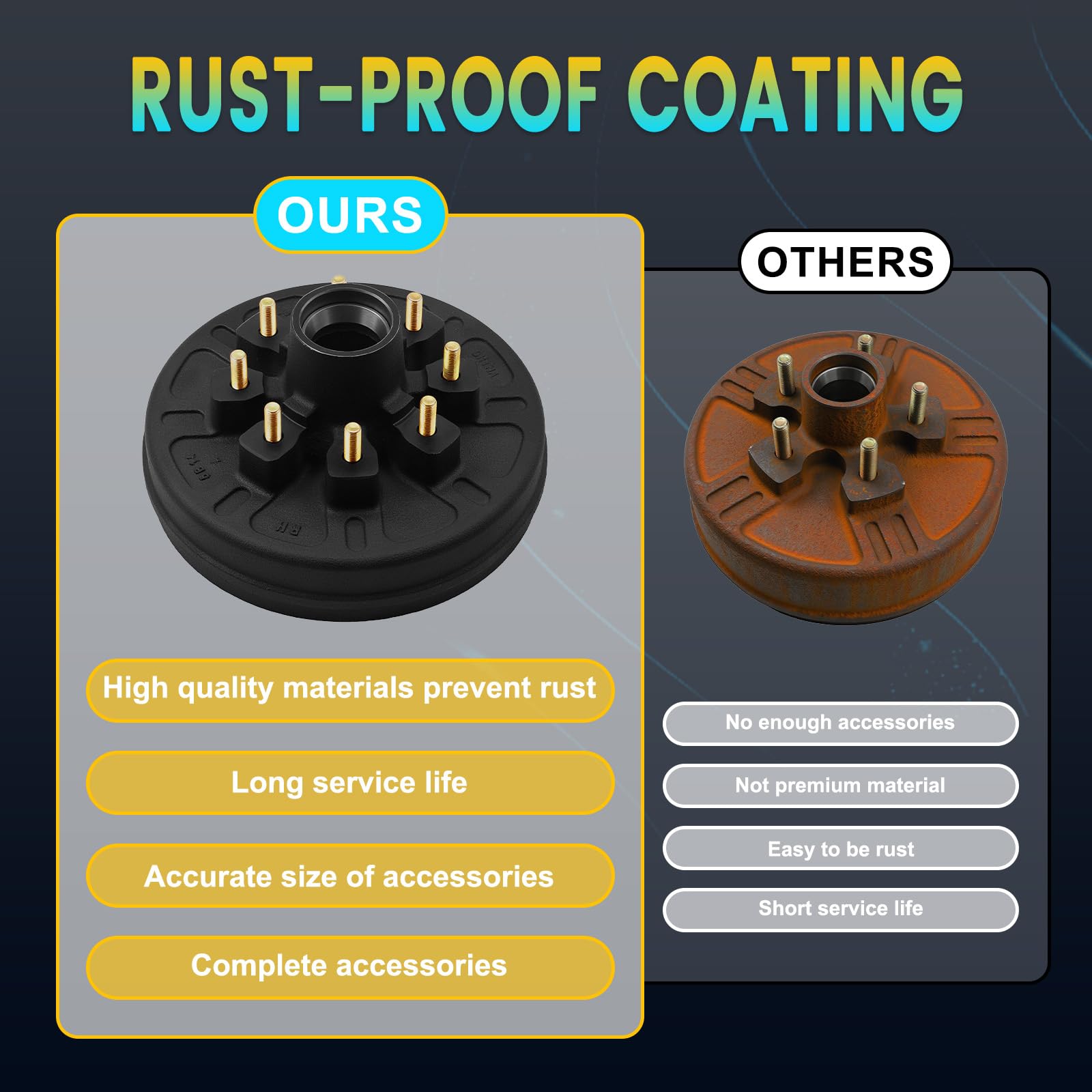 For a quick and easy installation, the kit comes complete with TruRyde bearings, seals, lug nuts, grease caps, cotter pins, spindle washers, spindle nuts, and brake mounting hardware.
