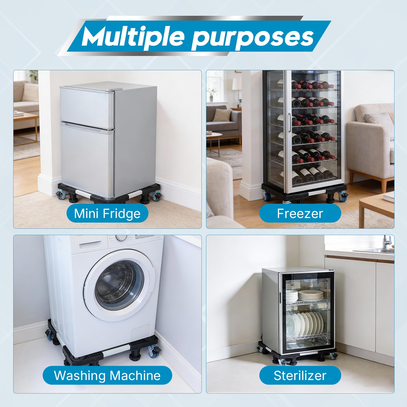 Easy-to-Adjust and Versatile: The I'SMARTMOON mini fridge stand features adjustable steel rods. You can customize the length from 16" to 25", and the stand provides minimum height of 3.9-4.7 inches. This incredible adaptability makes it the perfect solution for mini fridge stand and furniture dolly.