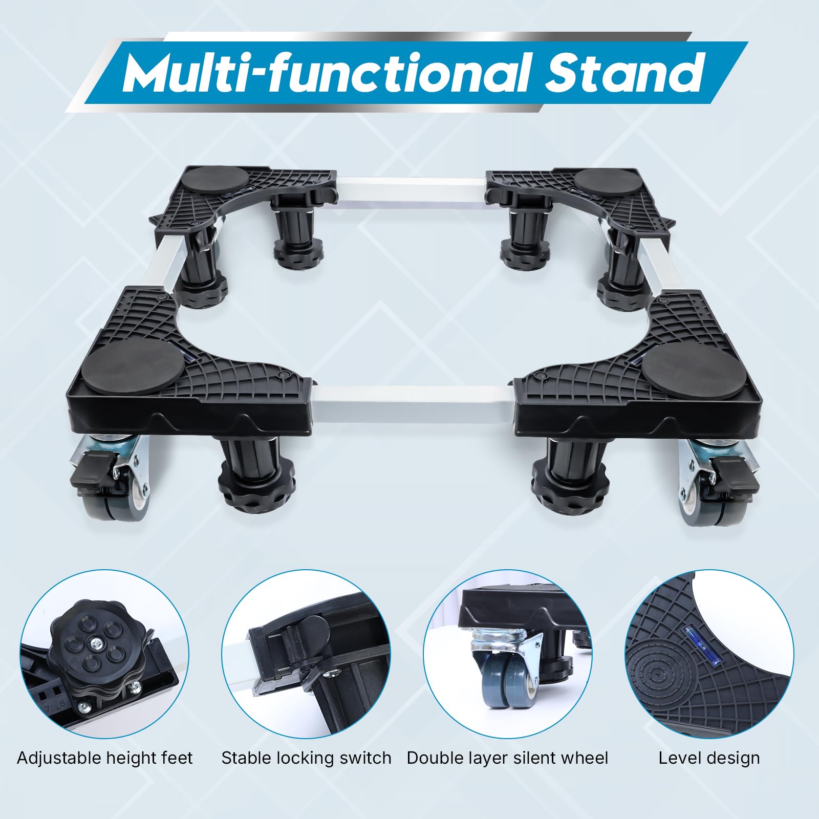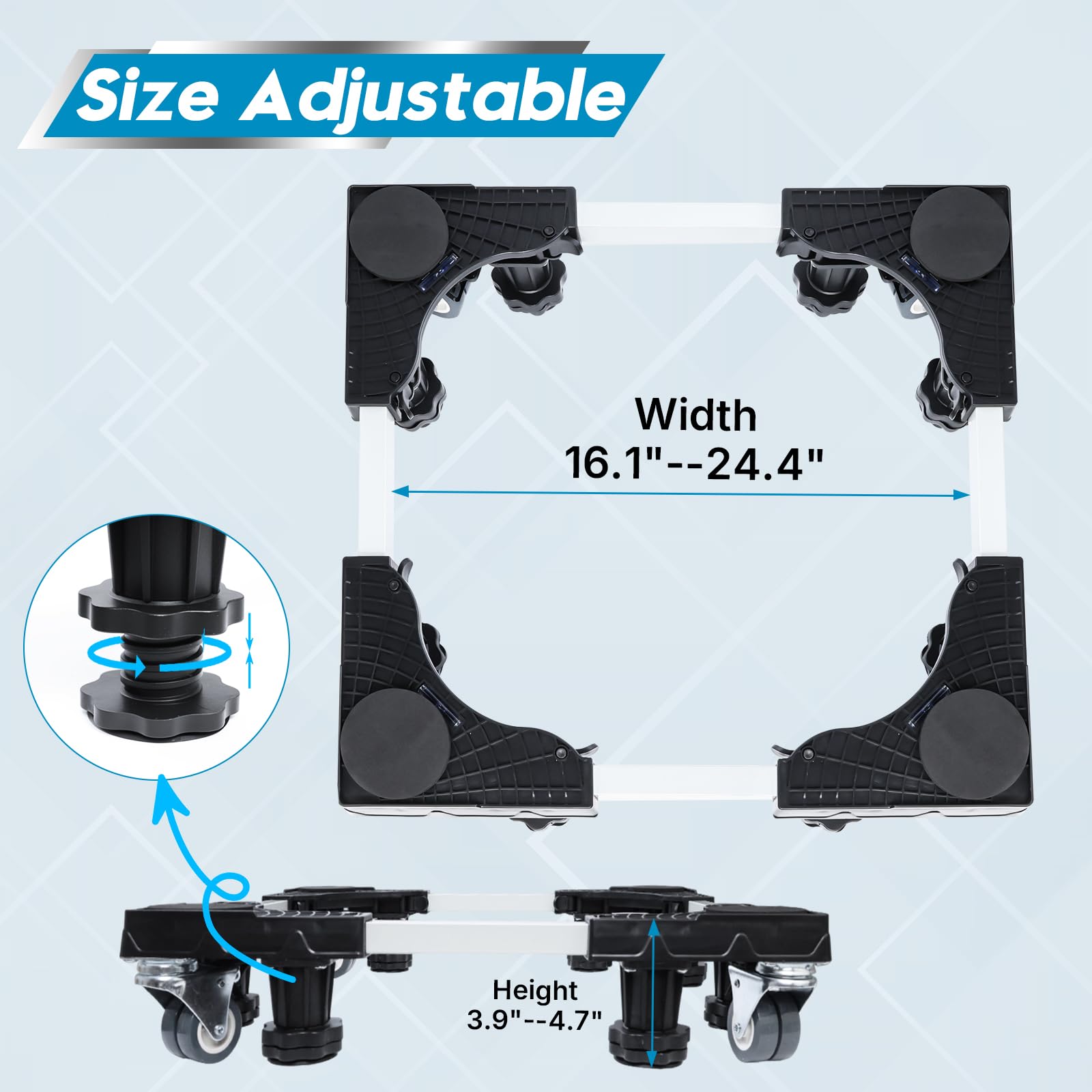 Omnidirectional & Lockable: Thanks to the four 360° swivel wheels with brakes, you can effortlessly move your appliances anywhere with this dryer stand. Need to keep your appliance in place? Just engage the brakes for a secure hold. The 4 enlarged support feet with non-slip pads ensure stability even during intense washing machine spin cycles.