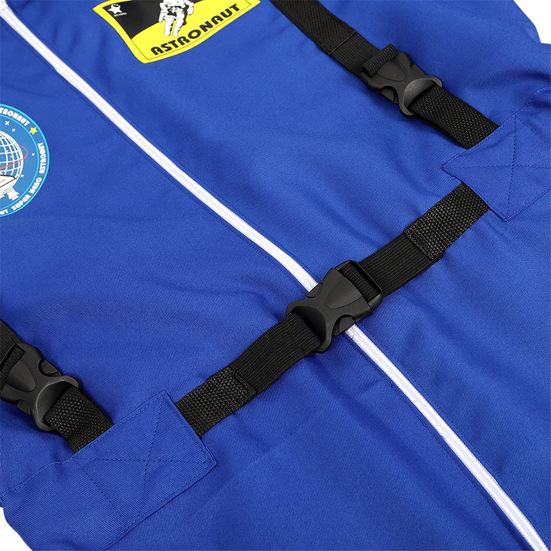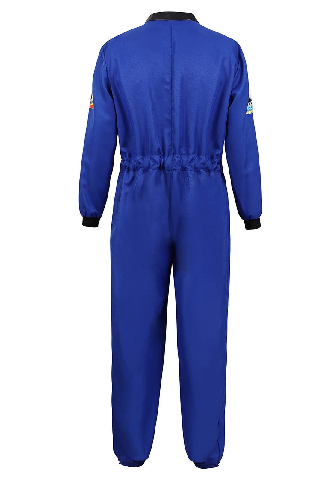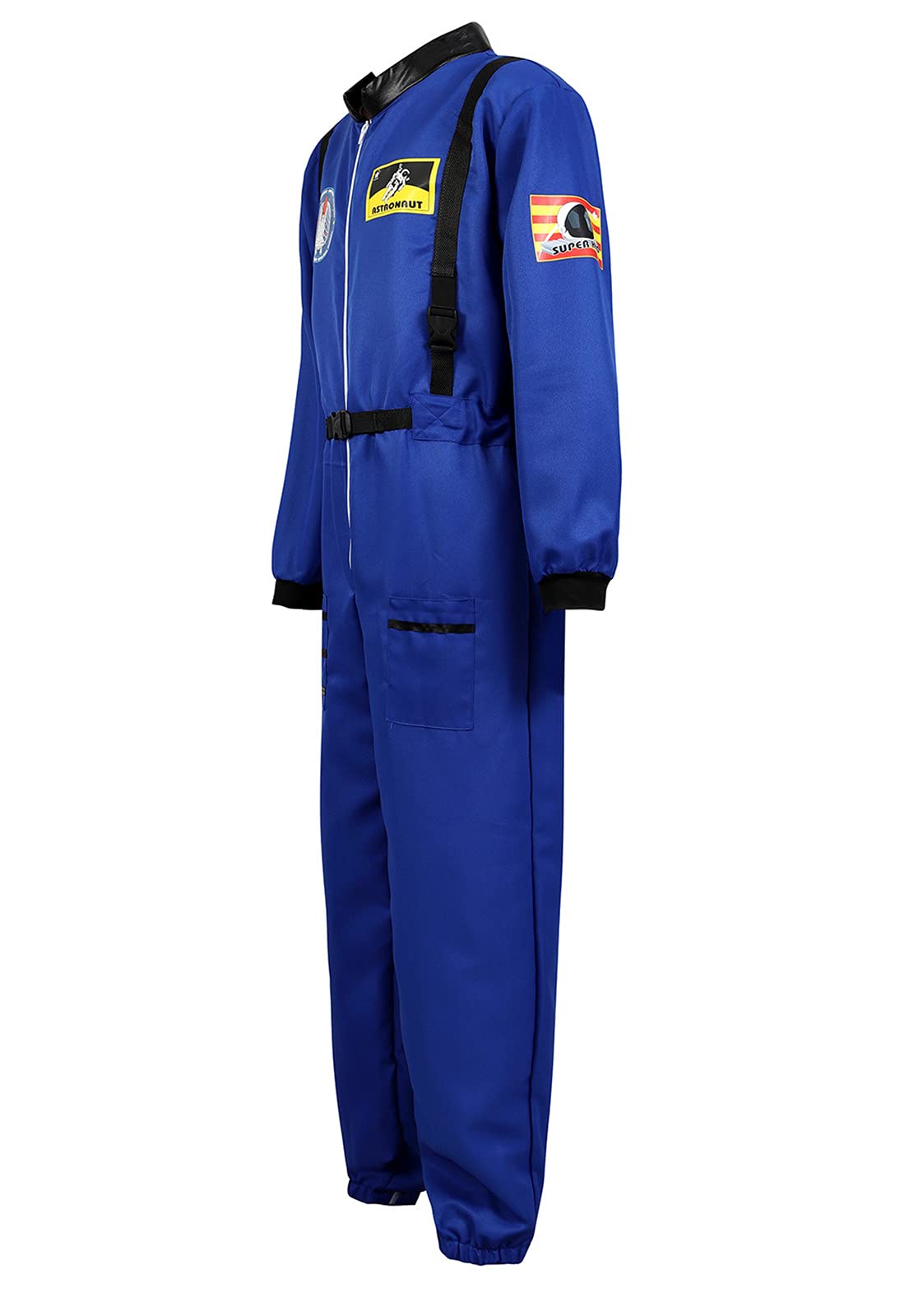 Astronaut Costume Adult, Long-sleeve front zipper jumpsuit space outfit, appealing decorations like space pattern printing on chest and sleeves.