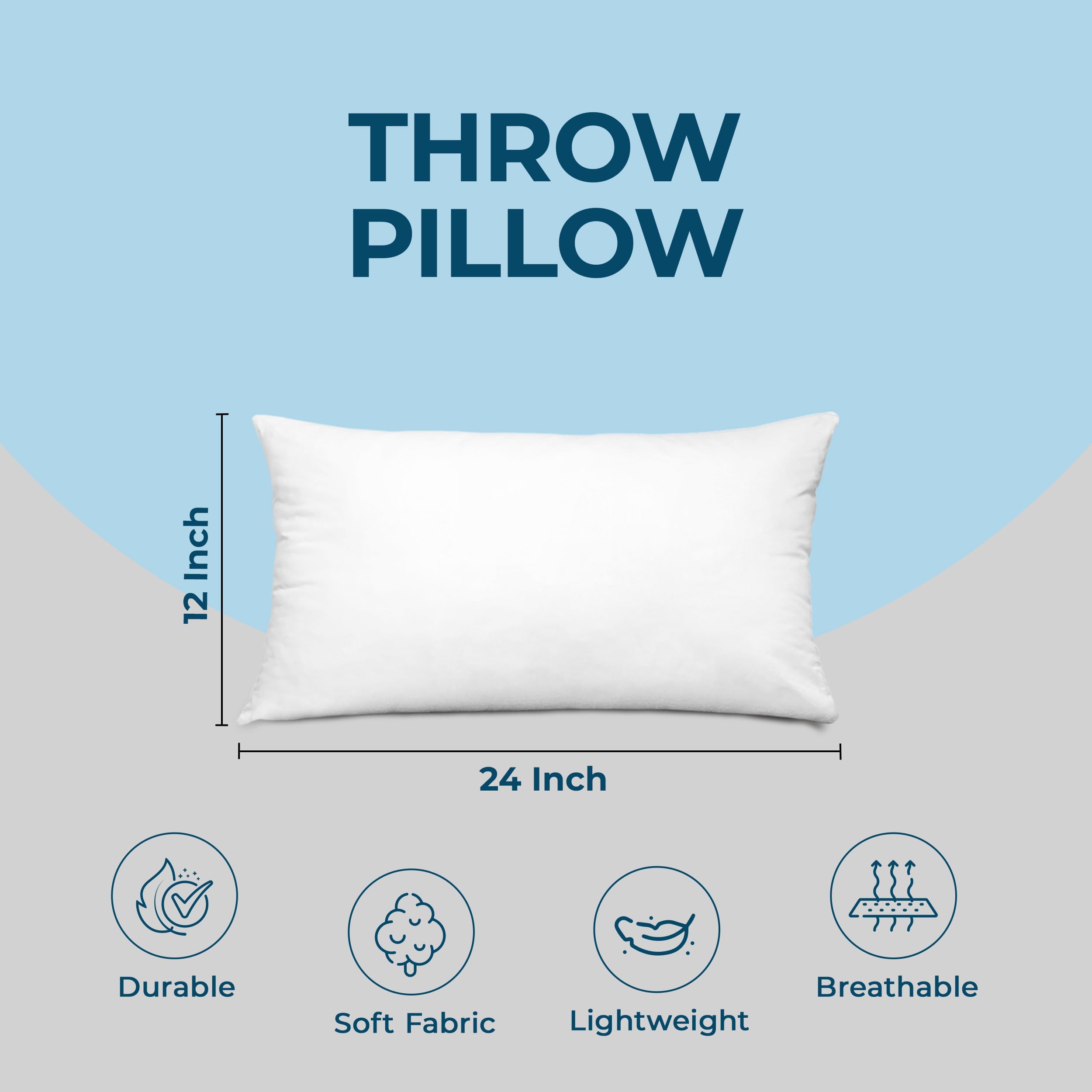 12 x 24 Pillow Inserts (Set of 4) – Offers a standard fit for 12x24 pillow covers and protectors. For a fuller, fluffed-up look, use them with covers one size smaller. Soft, fluffy couch pillows for living room, bedroom, or patio décor