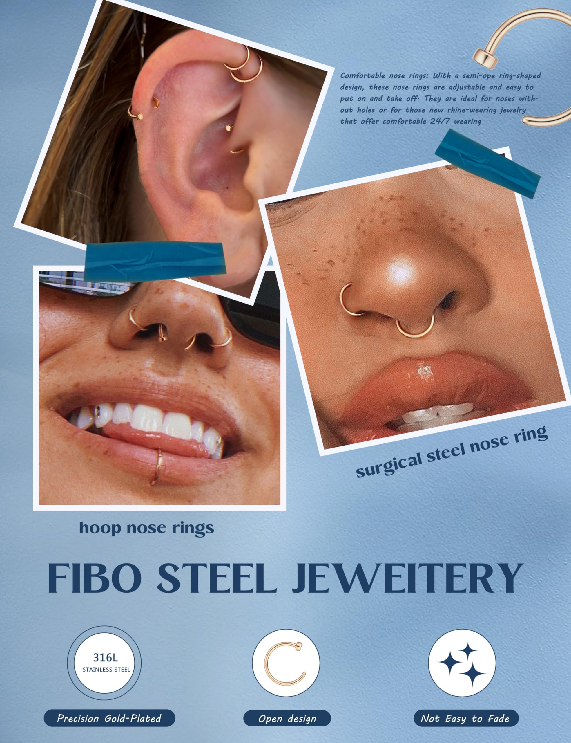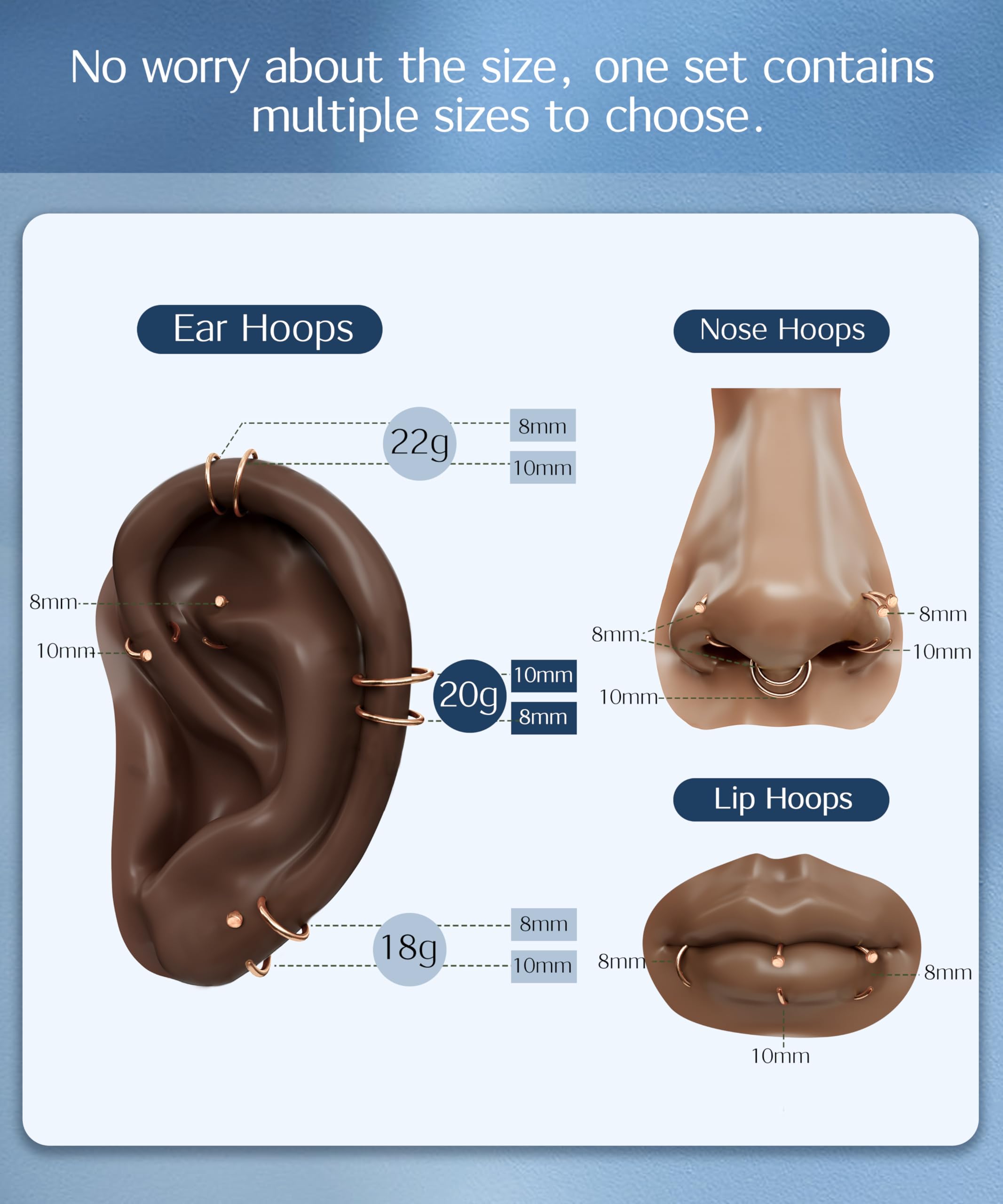 Nose Rings Size--The Thickness Of The Nose Ring: 18G, 20G, 22G. The Inner Diameter Of The Nose Ring:8mm, 10mm.Different Sizes For You To Choose, Suitable For Both Men And Women.