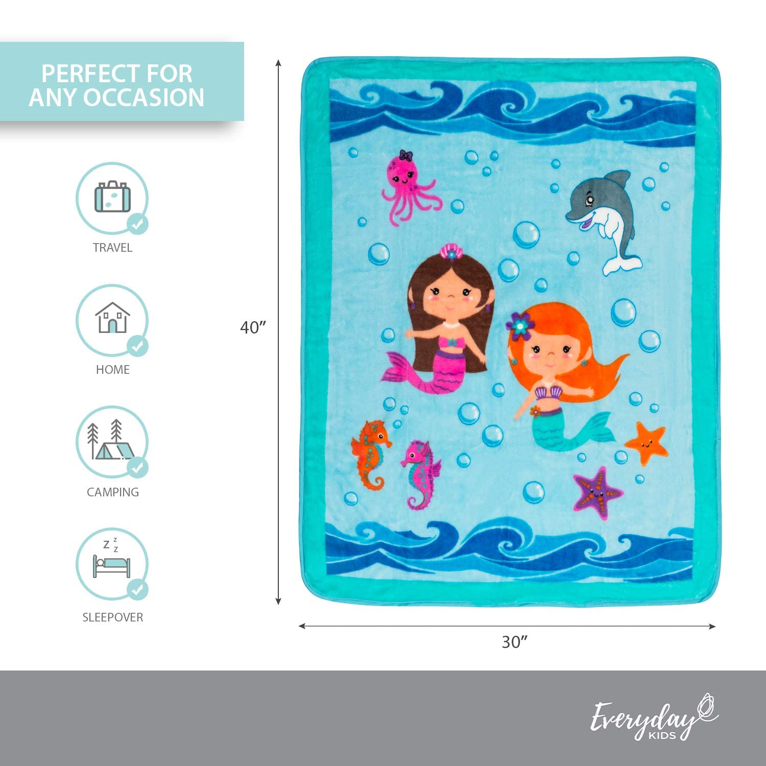 SO MANY USES: For younger children and babies our plush blanket is great for tummy time or keeping your baby warm and cozy in their car seat or stroller. As they get older, their mermaid plush throw makes a great kids picnic blanket, travel blanket, nap blanket and all-round snuggle buddy!