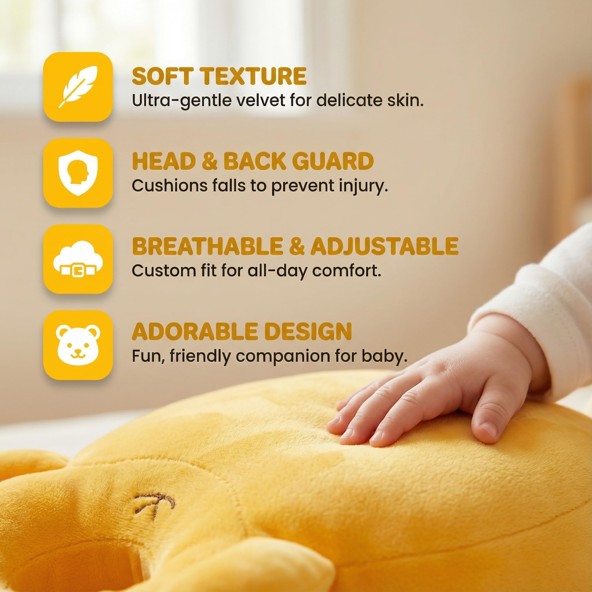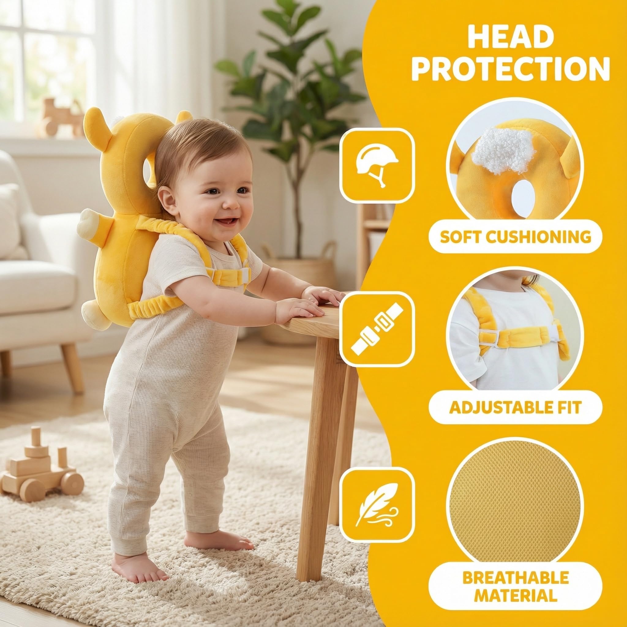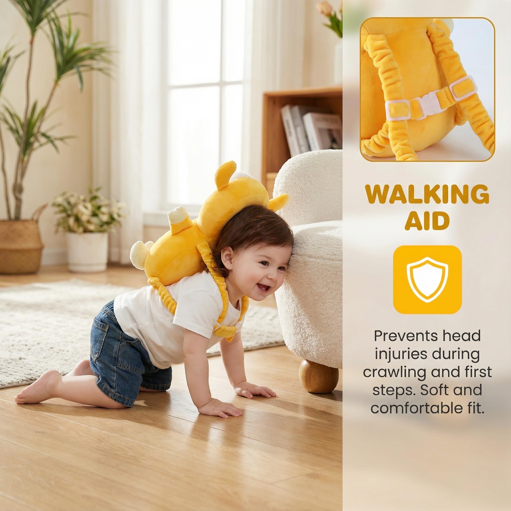 This head protector backpack for baby cushions falls, safeguarding delicate heads. Perfect for active babies with a soft, padded design that offers comfort and protection.