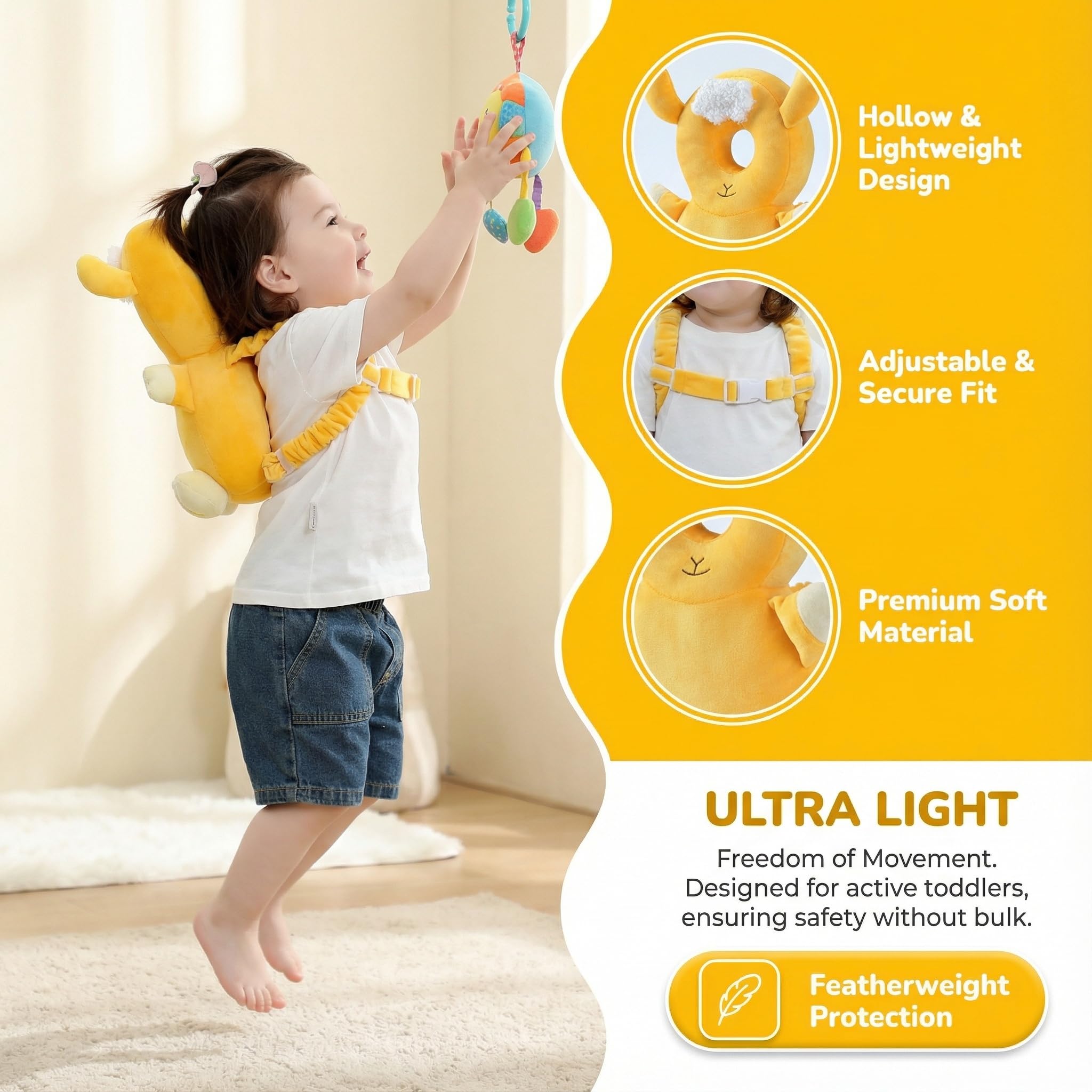 Introducing the Baby Head Protector, a must-have in baby gear for every concerned parent. Designed with both safety and comfort in mind, this head protection backpack is an essential accessory for any baby girl or boy. It offers superior protection during those crucial crawling and walking stages while ensuring they can explore their world safely. The baby backpack is constructed with high-quality materials, featuring a soft inner pillow to cushion against falls , making it an ideal choice for baby fall back head protector. Our head protection back pack for baby includes adjustable straps to fit toddlers of various sizes, from newborns to toddlers aged 2-4. Ideal for old parents who may have mobility issues themselves, it gives them peace of mind knowing their child is protected. It ensures your little one remains comfortable and secure, whether playing or sleeping. Choose the wonder baby head protector today and give your precious toddler the best start possible in life.