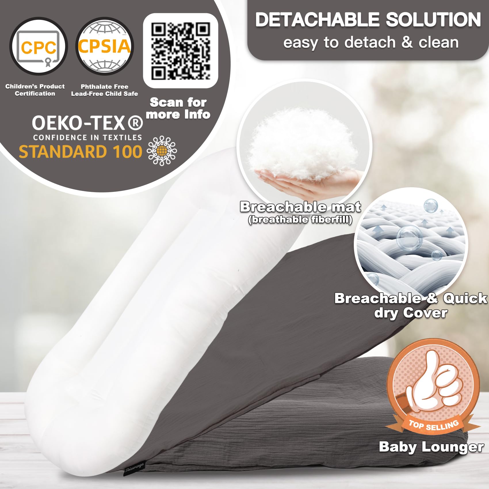 ❤ Organic Cotton & Safe Baby essential with organic cotton (no harmful chemicals). Filled with polyester fiber (no added chemicals/flame retardants)—machine washable.