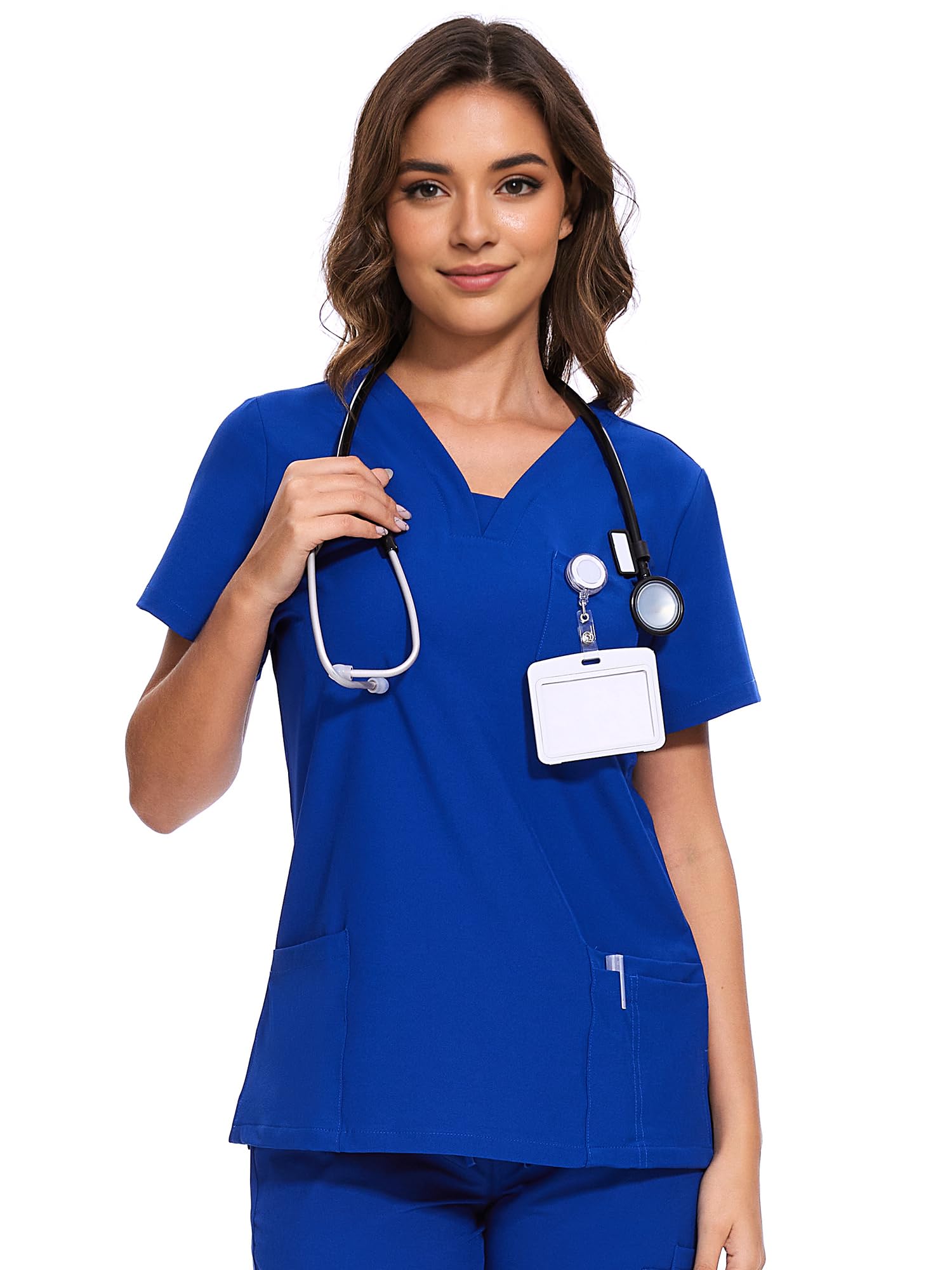 Durable Premium Fabric: Resilient fabric chosen for durability and comfort, providing a soft feel throughout the workday, making our women scrub tops durable and comfortable for long shifts.
