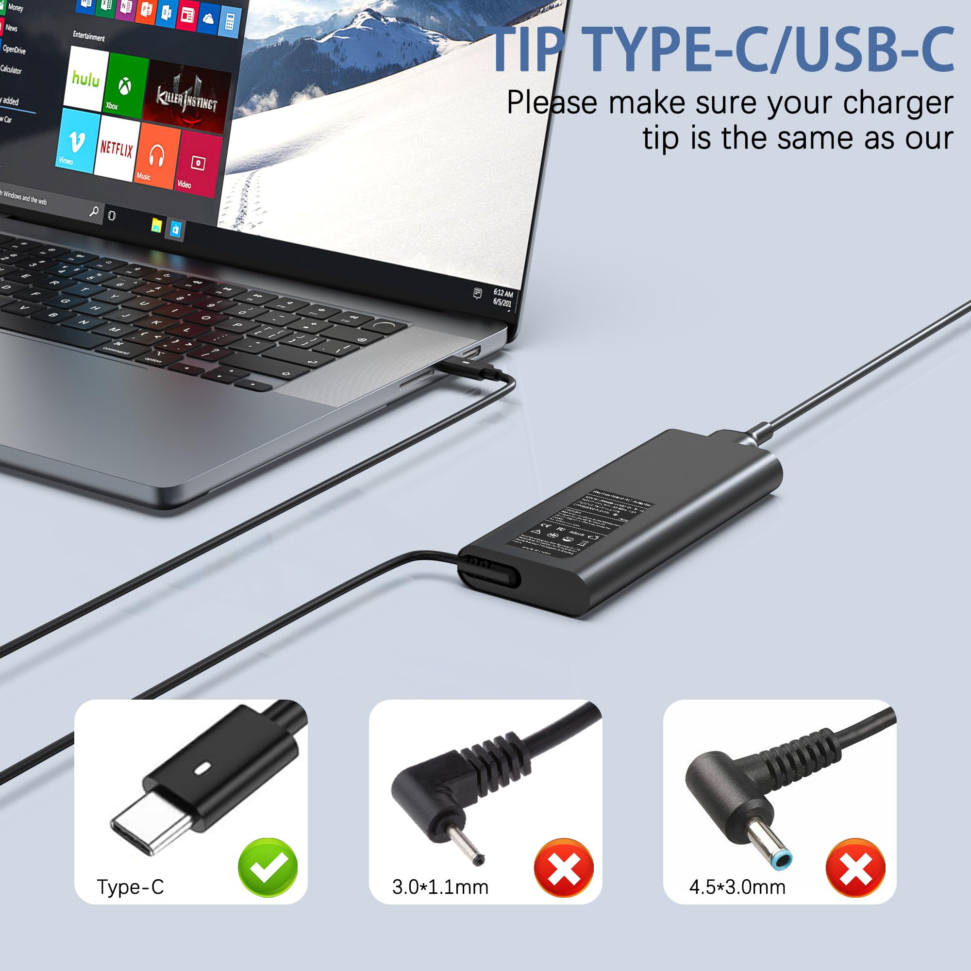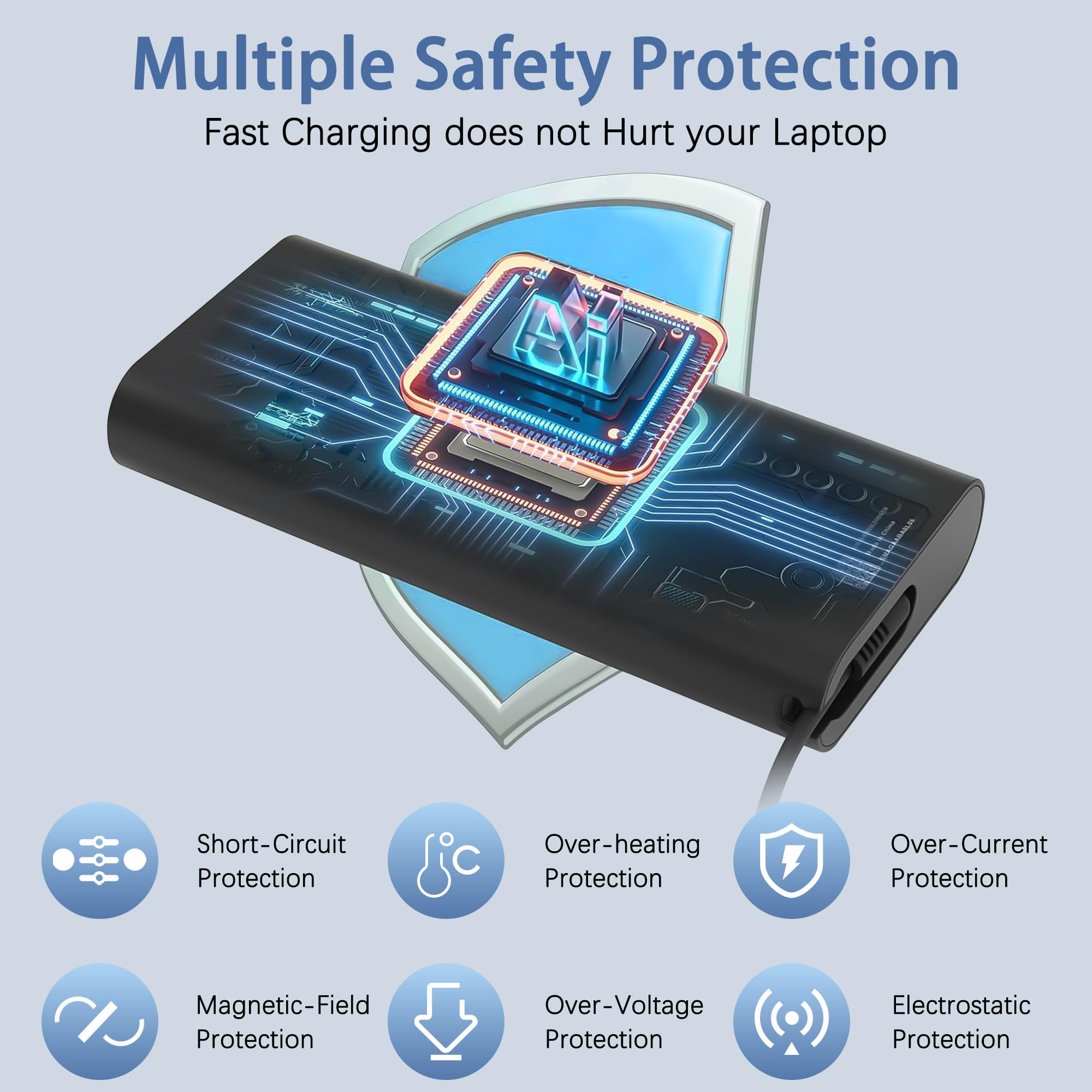 130W USB-C laptop charger delivers high-power output for fast charging. Compatible with 120W, 100W, 90W, 65W, 45W, and more, it suits various devices, meeting daily needs