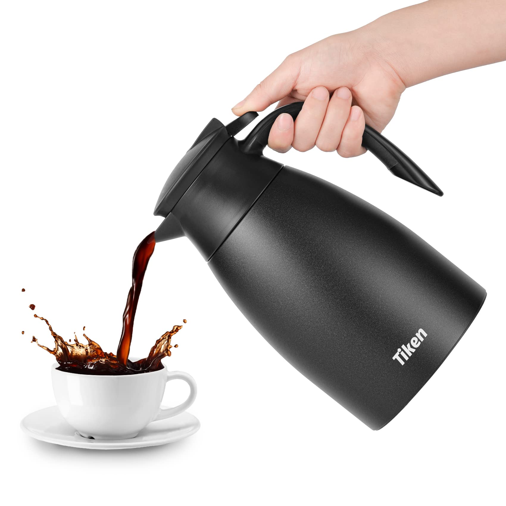 Our thermal coffee carafe uses a Press-down opening/closing mechanism. Pouring easily with push button ease, making one-handed pouring of the carafe simple.
