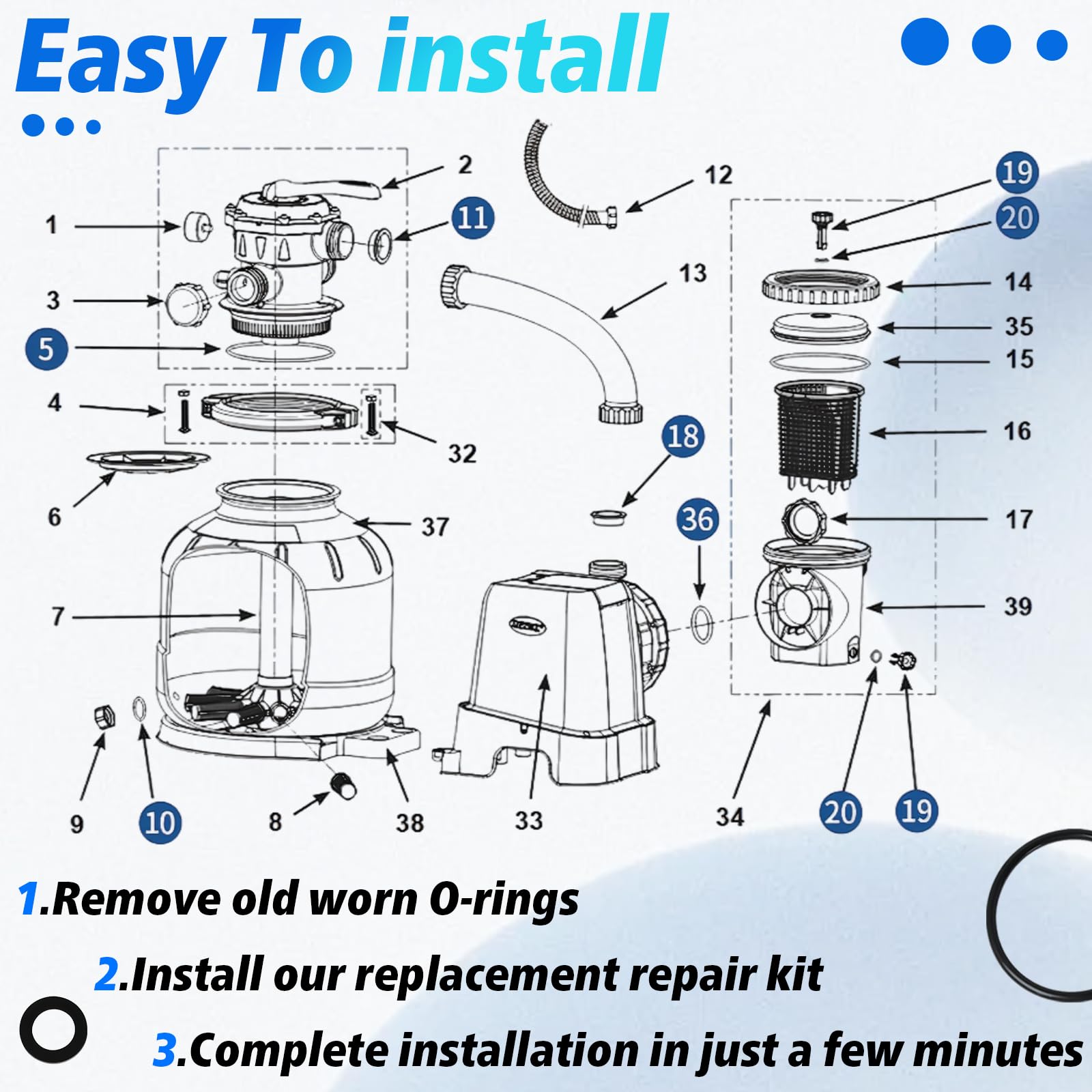 Leak-Proof Performance: Effectively prevents water and air leakage by replacing worn seals, minimizing pressure loss in the pump system. Ensures your sand filter operates at peak efficiency for faster water filtration, keeping your pool crystal clear and ready for summer's hottest days