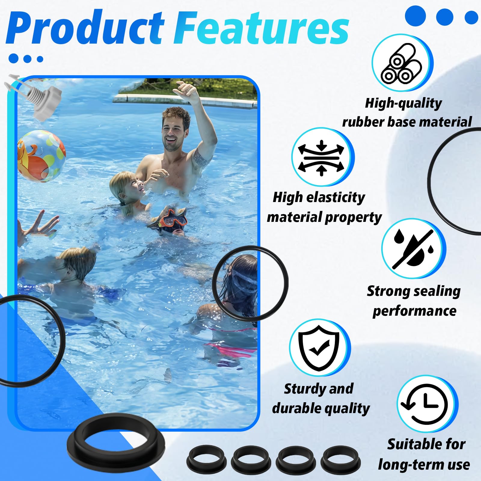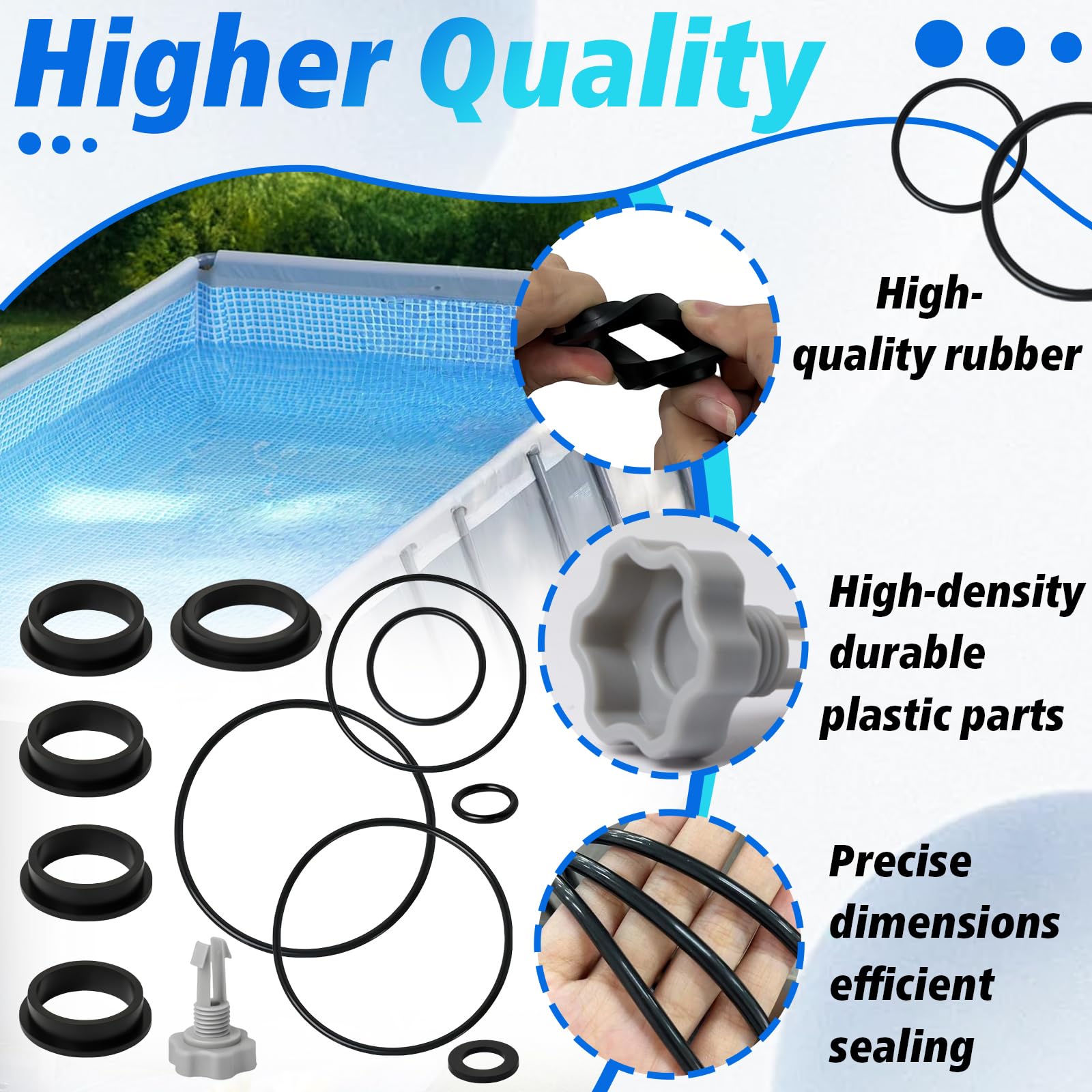Premium Quality:Crafted from high-density premium rubber material with exceptional elasticity and properties. Withstands frequent operational wear in pool environments, maintaining reliable sealing performance to extend your sand filter pump's service life