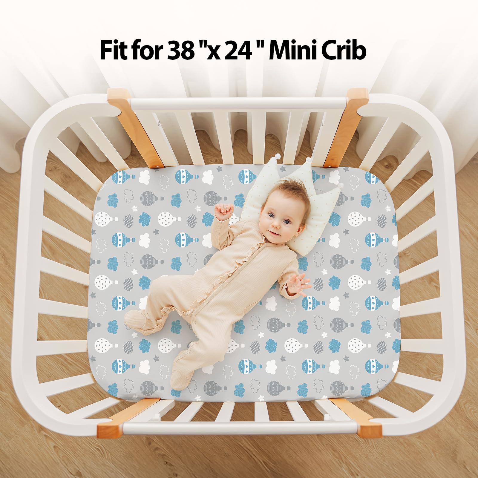 Nursery Essentials: Choose from a variety of stylish mini crib mattress sheets, featuring cute prints and bright colors to bring life to your nursery. You can create a cozy, warm, and harmonious sleep space that nurtures your child’s dreams and growth.