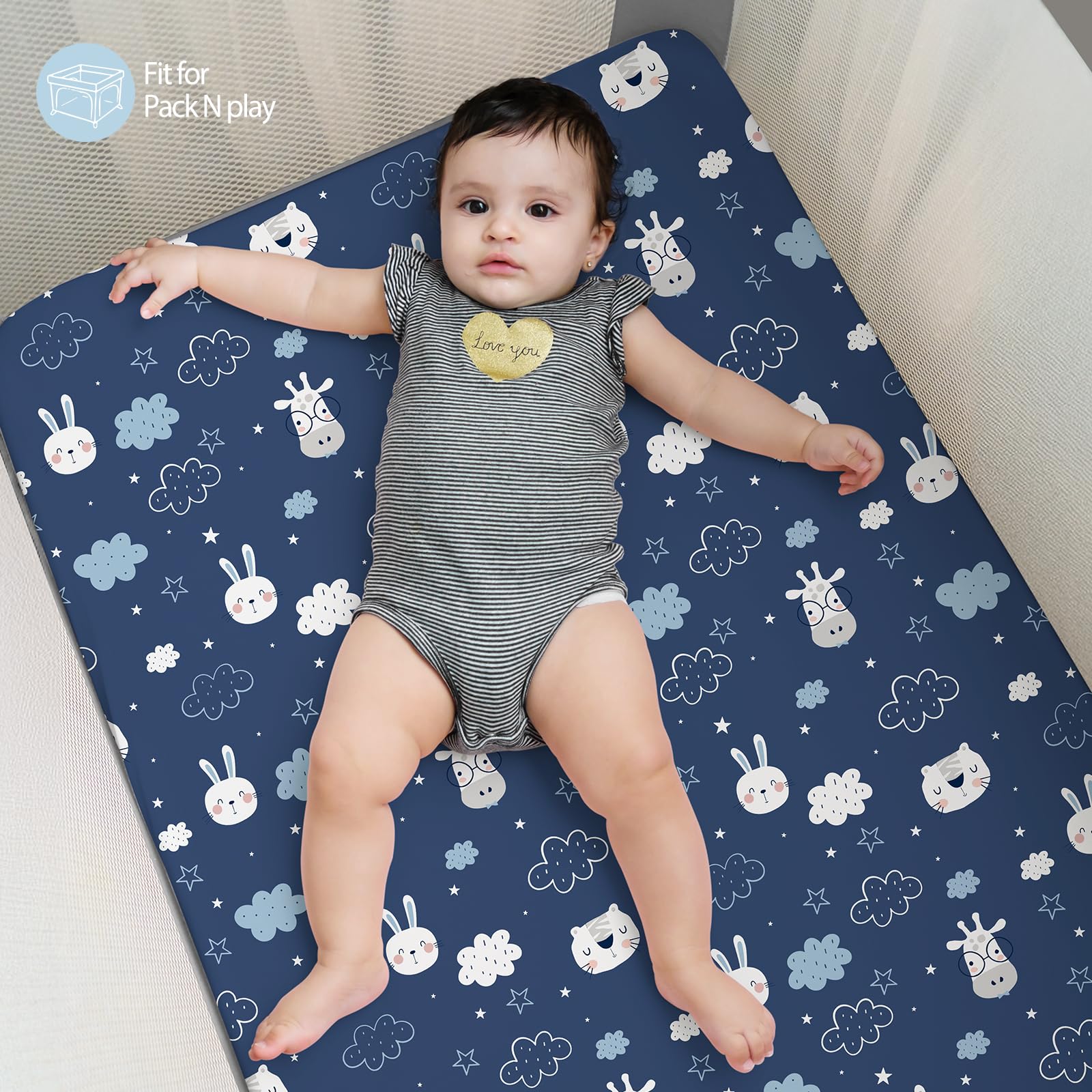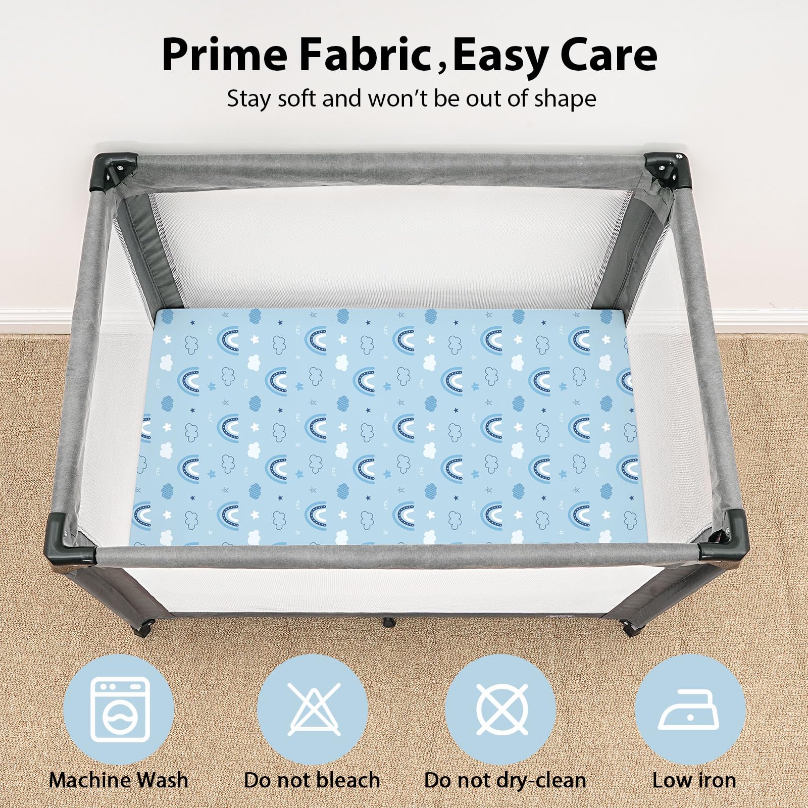 Soft & Skin-friendly Fabric: Crafted from premium microfiber with advanced knitting techniques, our pack and play mattress sheets are ultra-soft and gentle, perfect for even the most delicate and sensitive skin. Designed to keep your baby comfortable and relaxed, they promote sound sleep and support healthy growth.