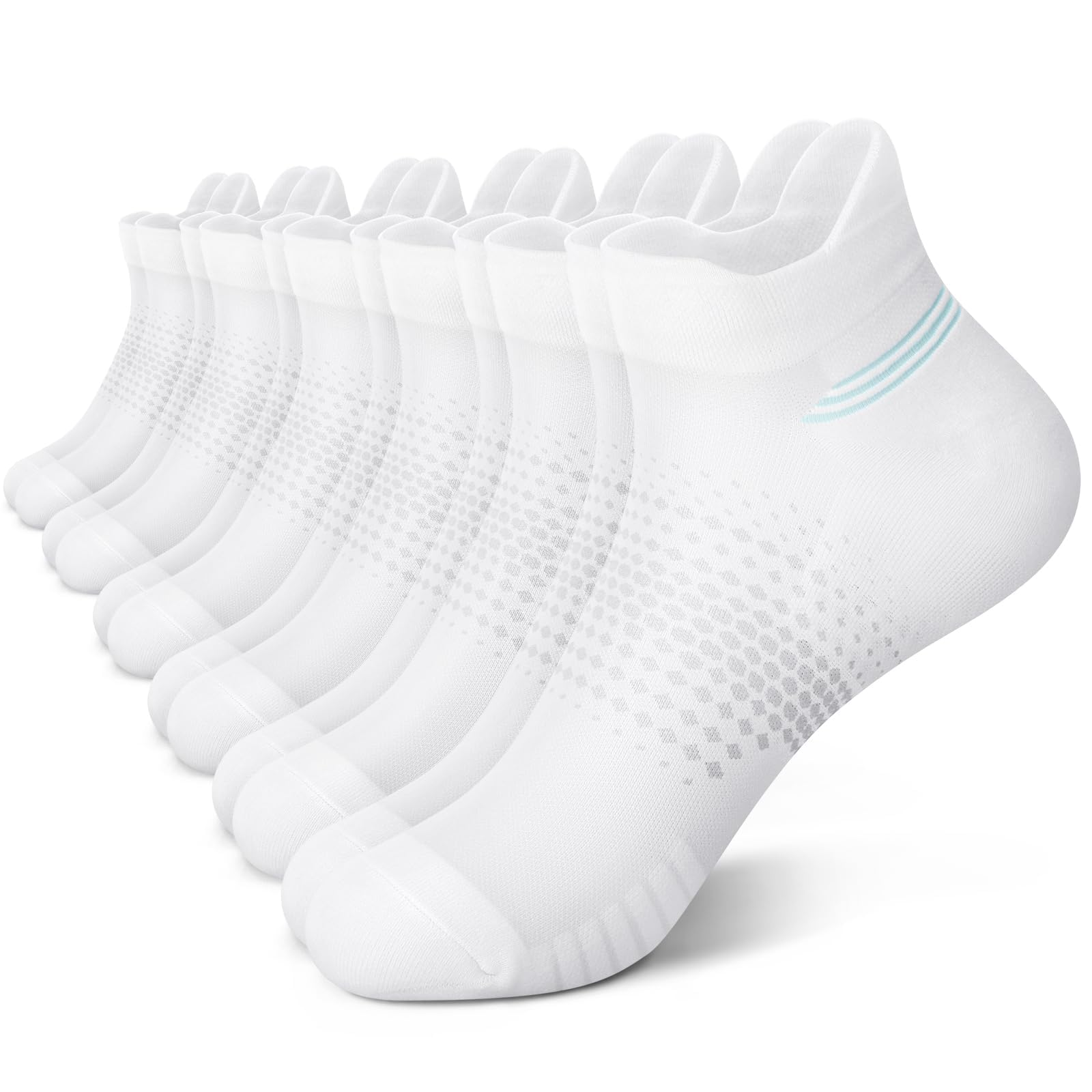 [LONG-LASTING]: Our running socks womens have reinforced stitching in high-wear areas, reinforced heel and toe areas withstand rigorous workouts and multiple washing. The cushioning design of the womens athletic socks sole effectively reduces the impact and damage during sports and make you more comfortable when you exercise. The seamless toe design can eliminate friction to prevent blisters