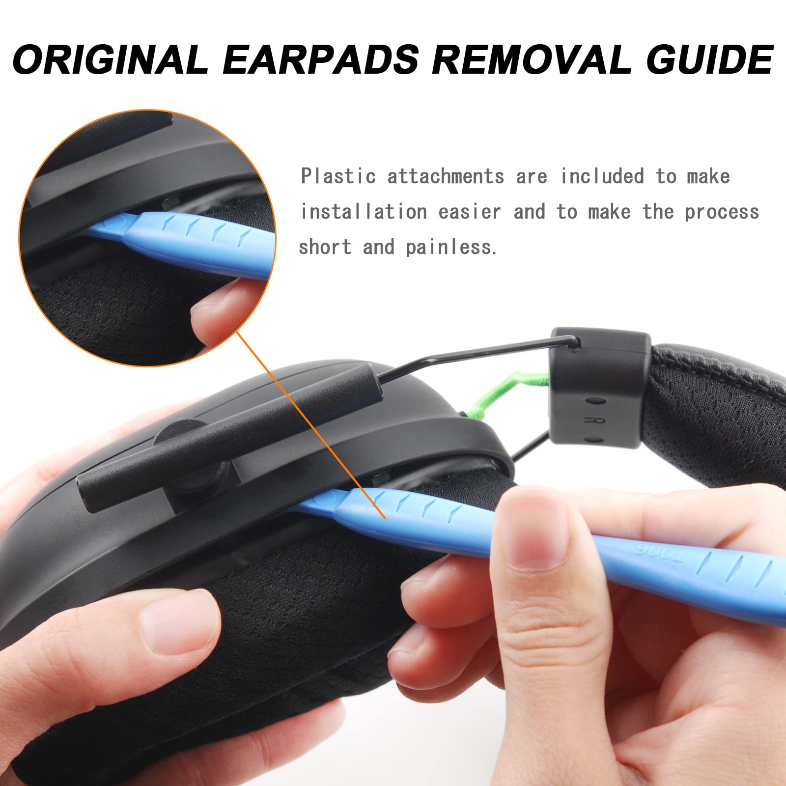 [Easy to install] Snap fit is identical to original. Aligned with the mounting posts inside the ear cups of the headphones and can be easily snapped in. (The complimentary pry bar can be used to remove the old ear cushions)