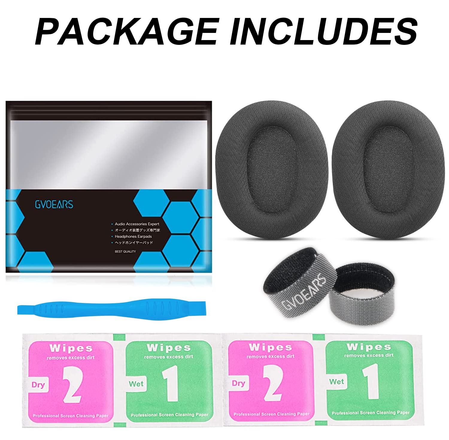 [Package Contents] 1 pair of Headphones earpads, 2 Headset cables VELCRO, 1 crowbar, 2 wipe pads. If you have any questions, please feel free to contact us.