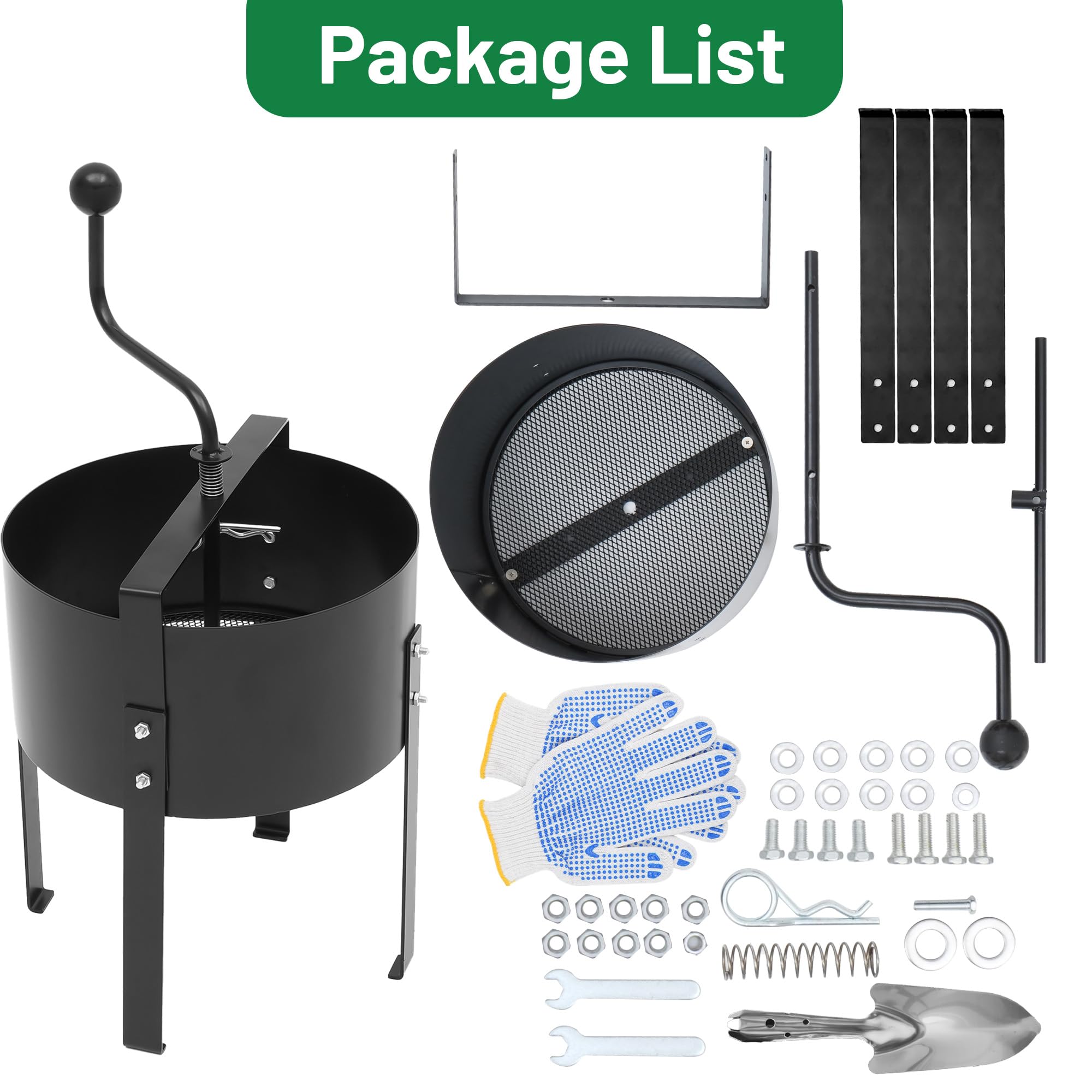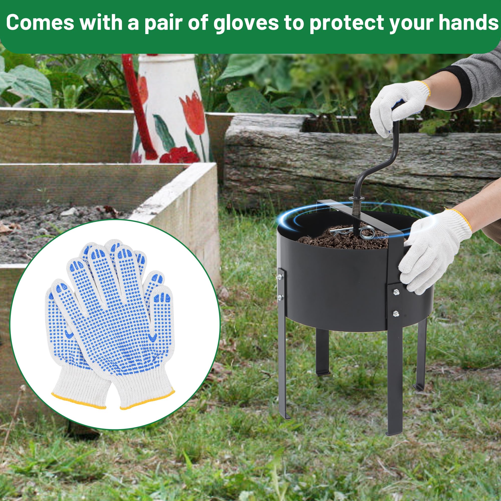 Sturdy Metal Construction: Rotary soil sifter, 11.8" dia. x 24.4" H, made of high quality heavy duty steel, duruable and sturdy, ensure stablity and safety