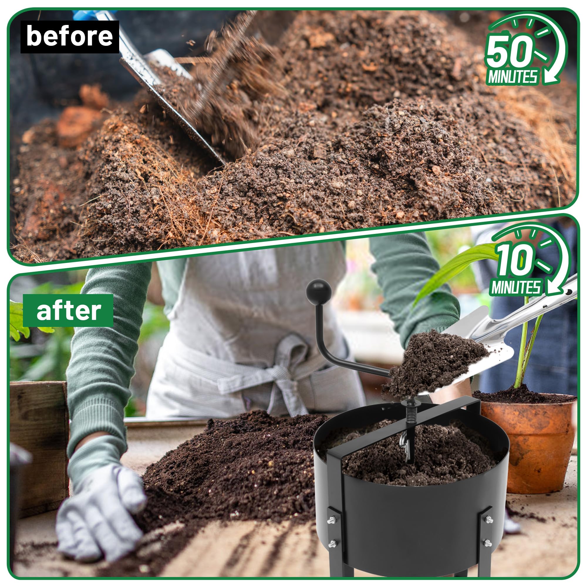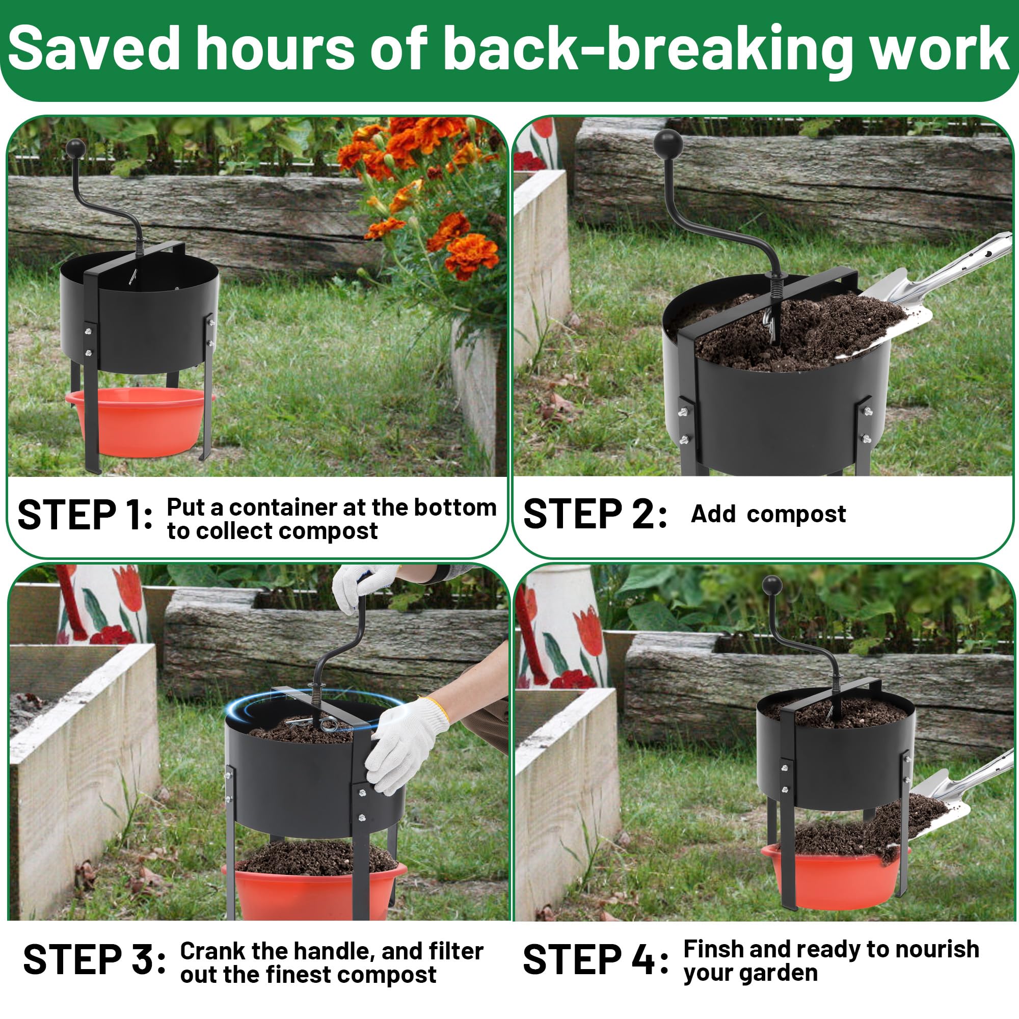 Exquisite Craftsmanship: Soil sifter for gardening, the handle is easy to crank, and construct with a fixed frame at the bottom, to protect the screen sifter not easy to fall off, 4 fixed legs to ensure stability and provide sufficient space for the filtering compost