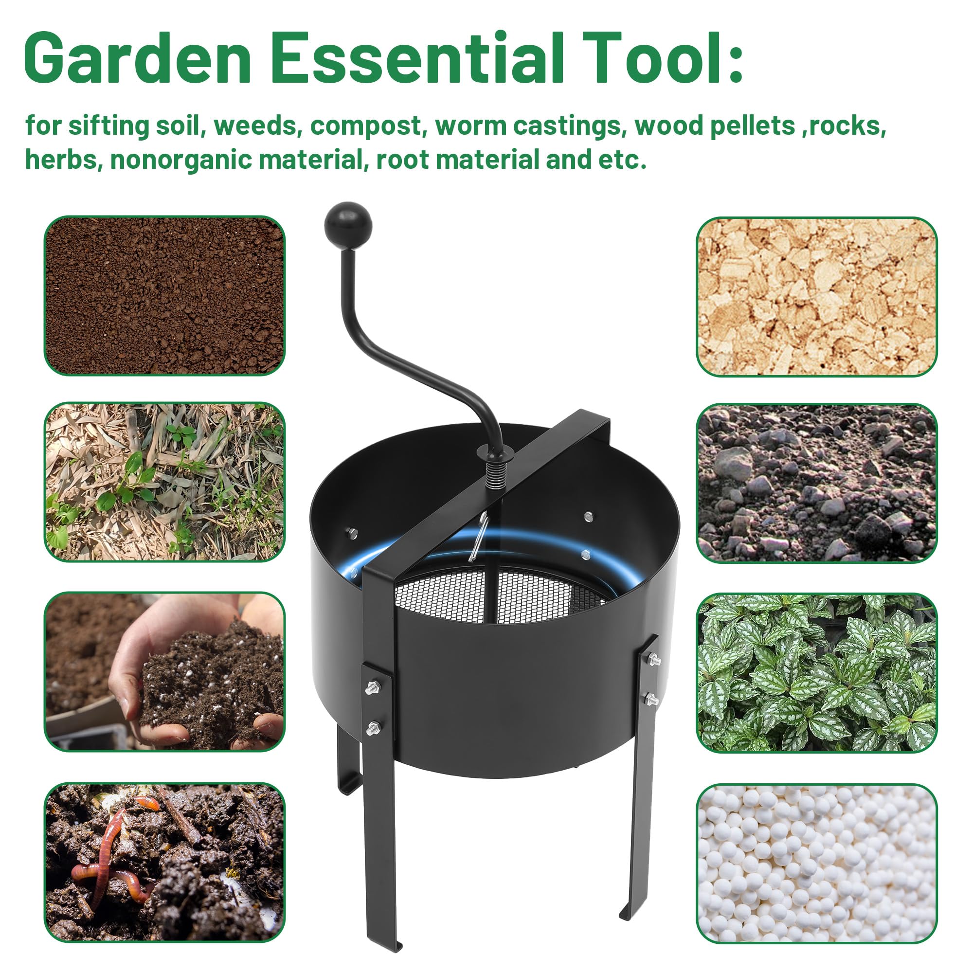 Multipurpose Garden Essential Tool: This soil sifter is not only great for sifting rocks and soil before planting gardens and outdoor activities, but it can also sift weeds, compost, gravel, worm castings, wood pellets ,rocks, herbs, nonorganic material, root material and etc.