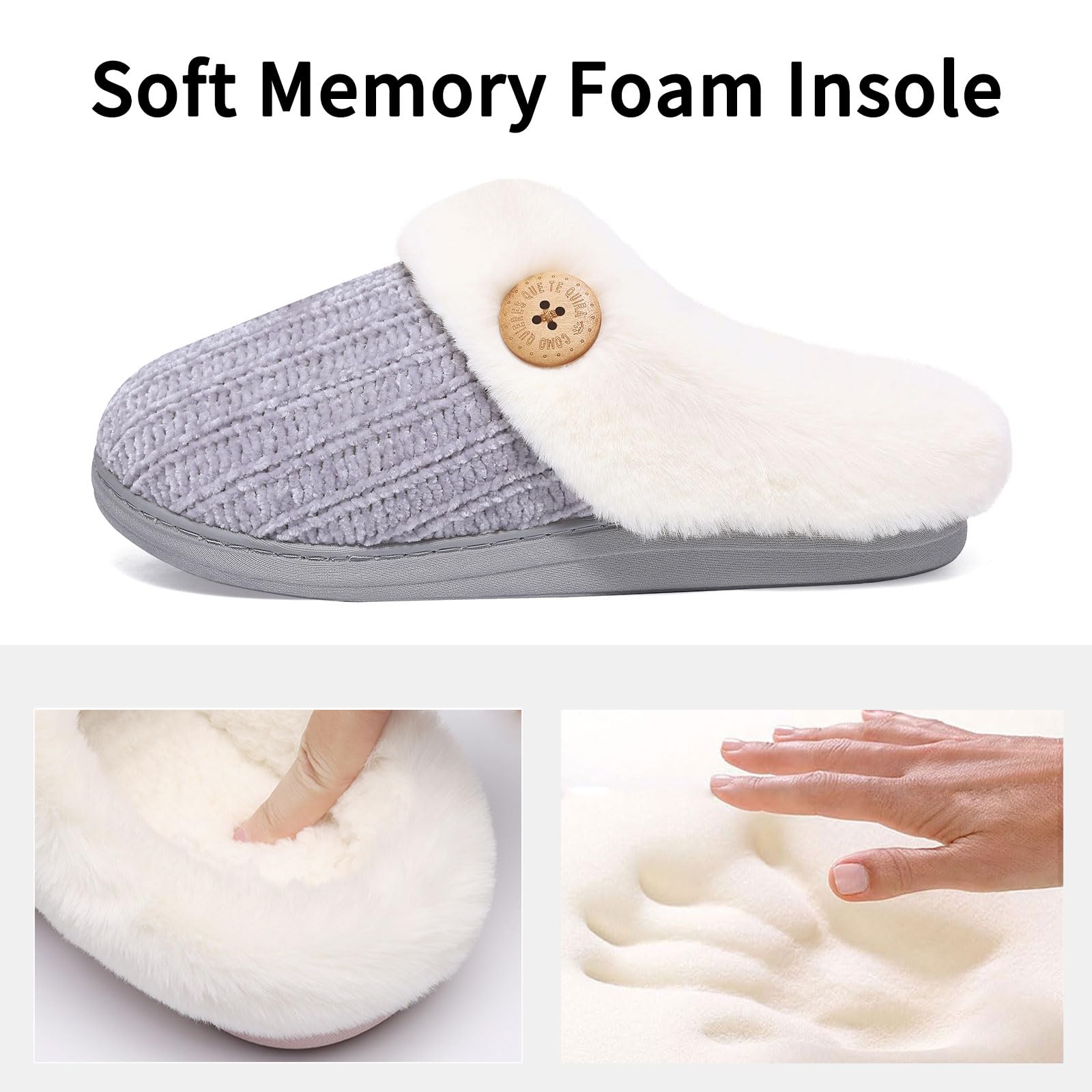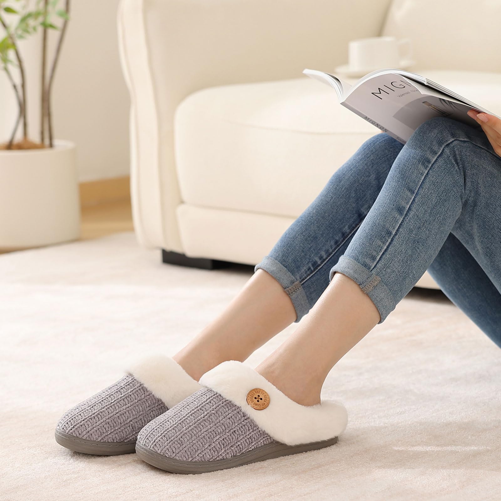 𝐖𝐨𝐦𝐞𝐧'𝐬 𝐂𝐥𝐚𝐬𝐬𝐢𝐜 𝐊𝐧𝐢𝐭𝐭𝐞𝐝 𝐒𝐥𝐢𝐩𝐩𝐞𝐫𝐬: Our women's slippers feature a breathable chenille knit upper gorgeously crafted with a thick inner lining of premium wool-like. Experience ultimate warmth and comfort while keeping your feet cozy.