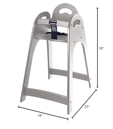 Sleek design and color choices match modern restaurant design and décor. Constructed of seamless, solid HDPE plastic, which is more durable and sanitary in comparison to standard wood high chairs. Textured surface resists scuffing, chipping and scratching. There are no crevices or seams for food to collect. Chair has a small footprint in the dining area and is stackable as a space Saver. Table height chair allows a seated child to eat off a standard restaurant table without the need for a tray. Curved design reduces potential liability by preventing chair from being turned upside down and used unsafely to balance an Infant carrier. Meets the latest ASTM and EN high chair standards. Consumers are prohibited from purchasing high chairs for home use. This product is exclusively designed for use in commercial settings such as restaurants.