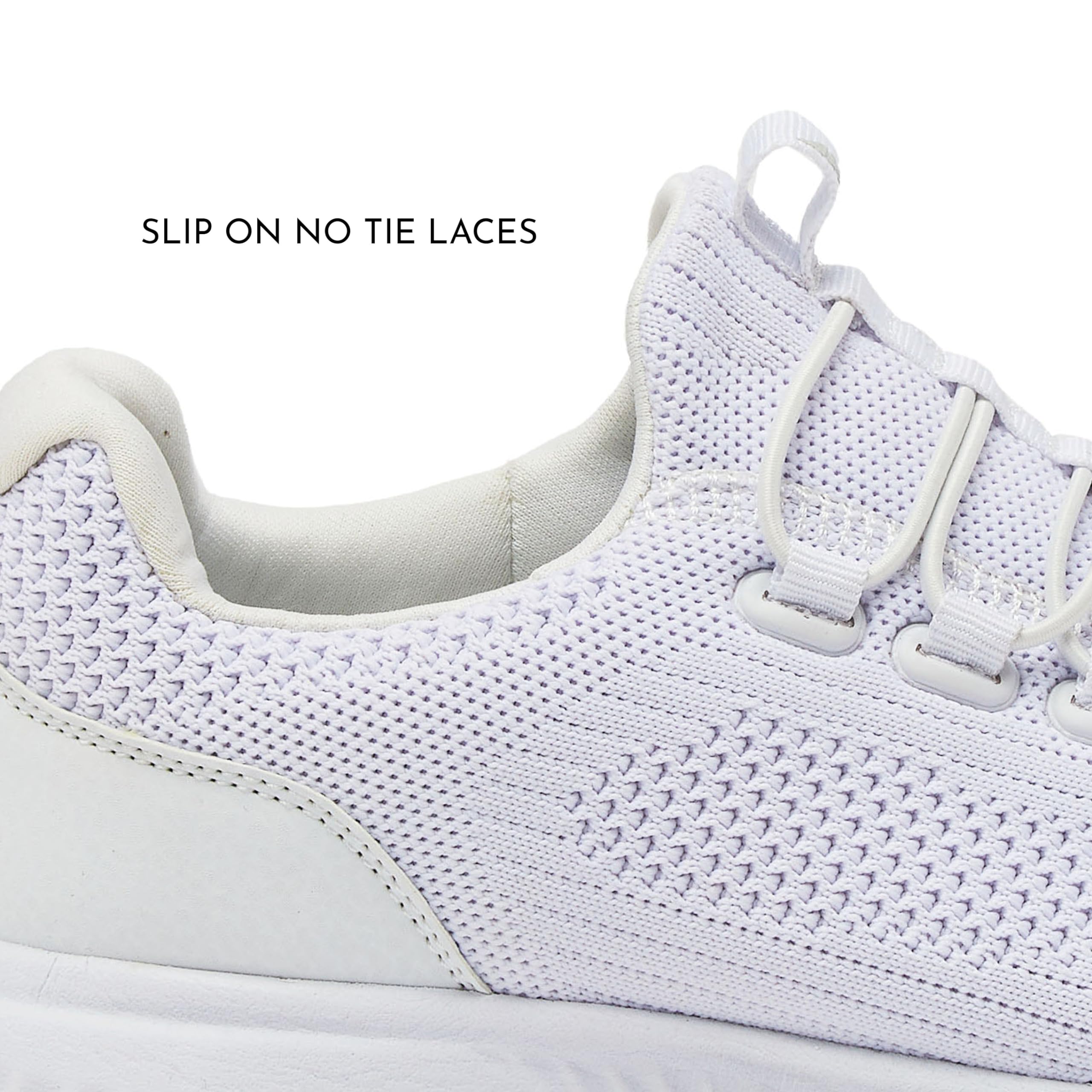 WOMENS SLIP ON SNEAKERS NO LACES - Gore laces with no tying for easy on and off. The compression molded EVA midsole, anatomical heel cradle, and soft padded collar provide exceptional shock absorption, cushioning and support.