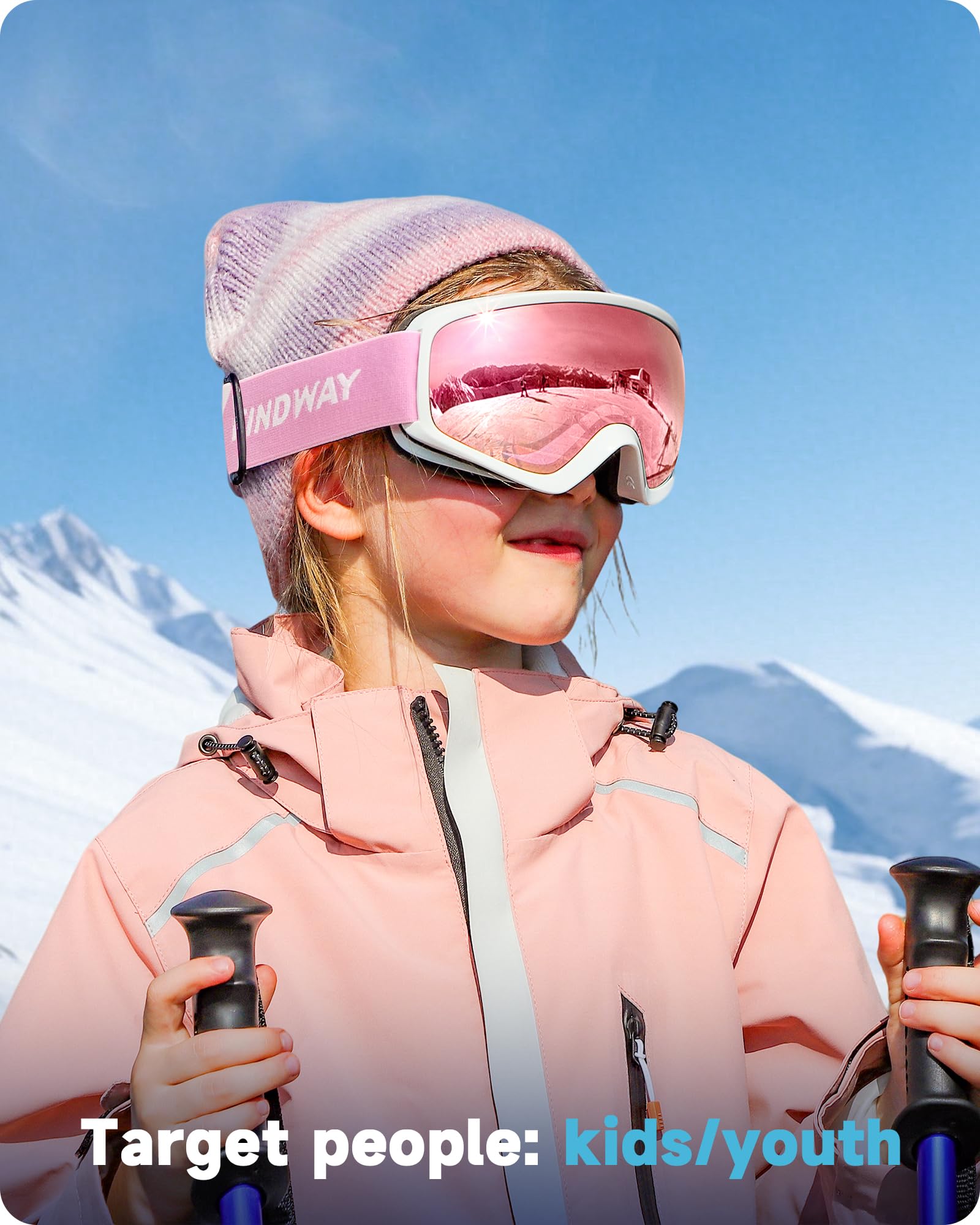 【Anti-Slip Strap & Helmet Compatibility】These kids skiing goggles equipped with adjustable non-slip strap, the long adjustable range and extremely elastic can ensure almost all helmet compatibility for kids and youth. 3 wave-patterned silicone non-slip belts can increase friction, and ensure the snow goggles stay in place on the helmet and will not slide off the helme during the most extreme of rides.