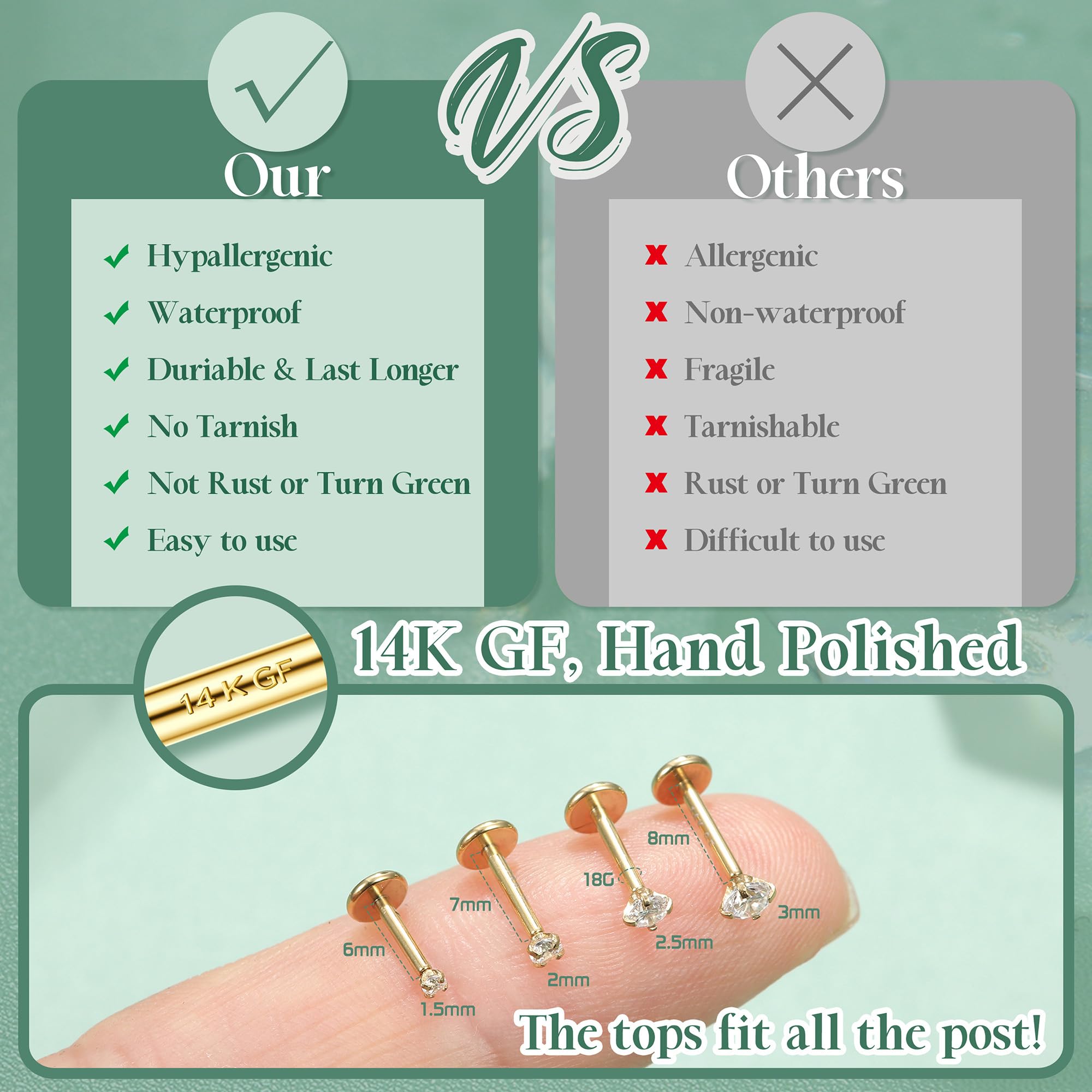 Long-lasting Shine: 14K gold plated surgical grade 316L stainless steel and AAAAA+ cubic to prevent tarnishing, ensuring they maintain their shine over time.Meticulously polished to achieve a stunningly smooth and shiny surface,enhancing the overall aesthetic appeal of the Flat Back Stud Earrings