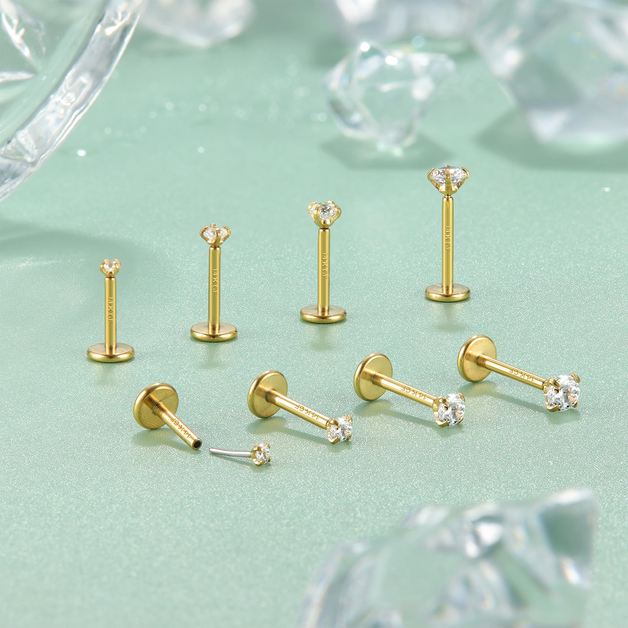 Threadless Push in Cartilage Earring:Gauge size: 18G(1mm) Bar Length: 6mm/7mm/8mm, CZ Diameter: 1.5mm,2mm,2.5mm,3mm, Color: Silver . Material: 316L stainless steel.One order includes 8PCS Labret Posts (3 different length ),8PCS different size of Threadless Ends, 1PCS Taper Insertion Pin. ONE LABRET POST TO FIT ALL THESE THREADLESS ENDS