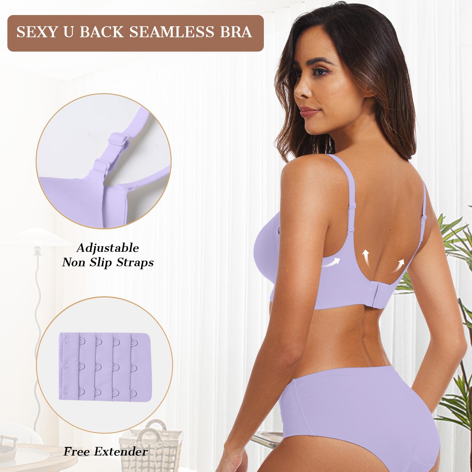 Adjustable 4 row hooks V neck bralette - The V neck bralettes for women feature 4 rows of adjustable hooks, with 3 hooks on each row, providing additional support and concealing back fat, making it easy to find your perfect fit. The V neck design of this bralette gives you a sexy cleavage look. It is an ideal t-shirt outfit bra for women.