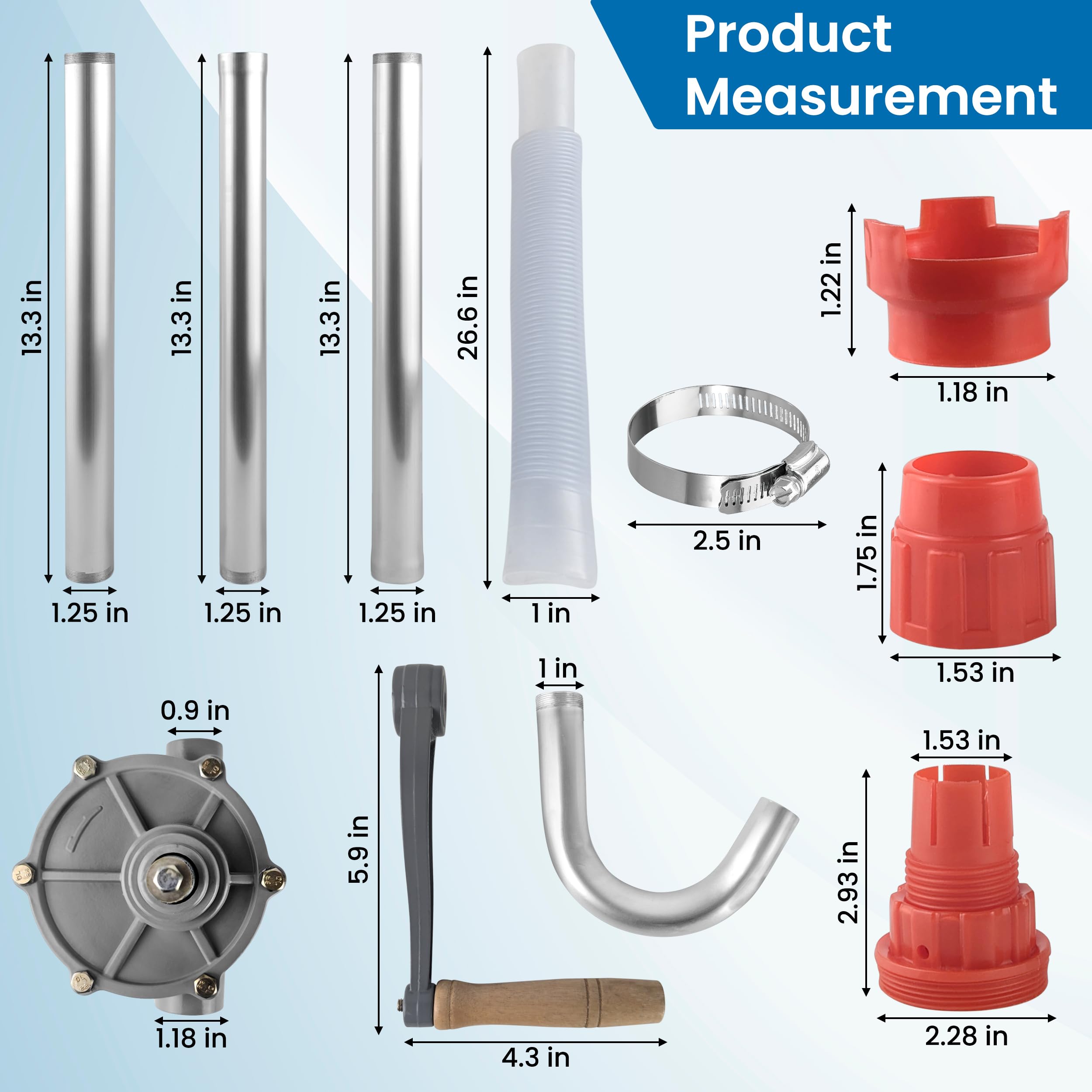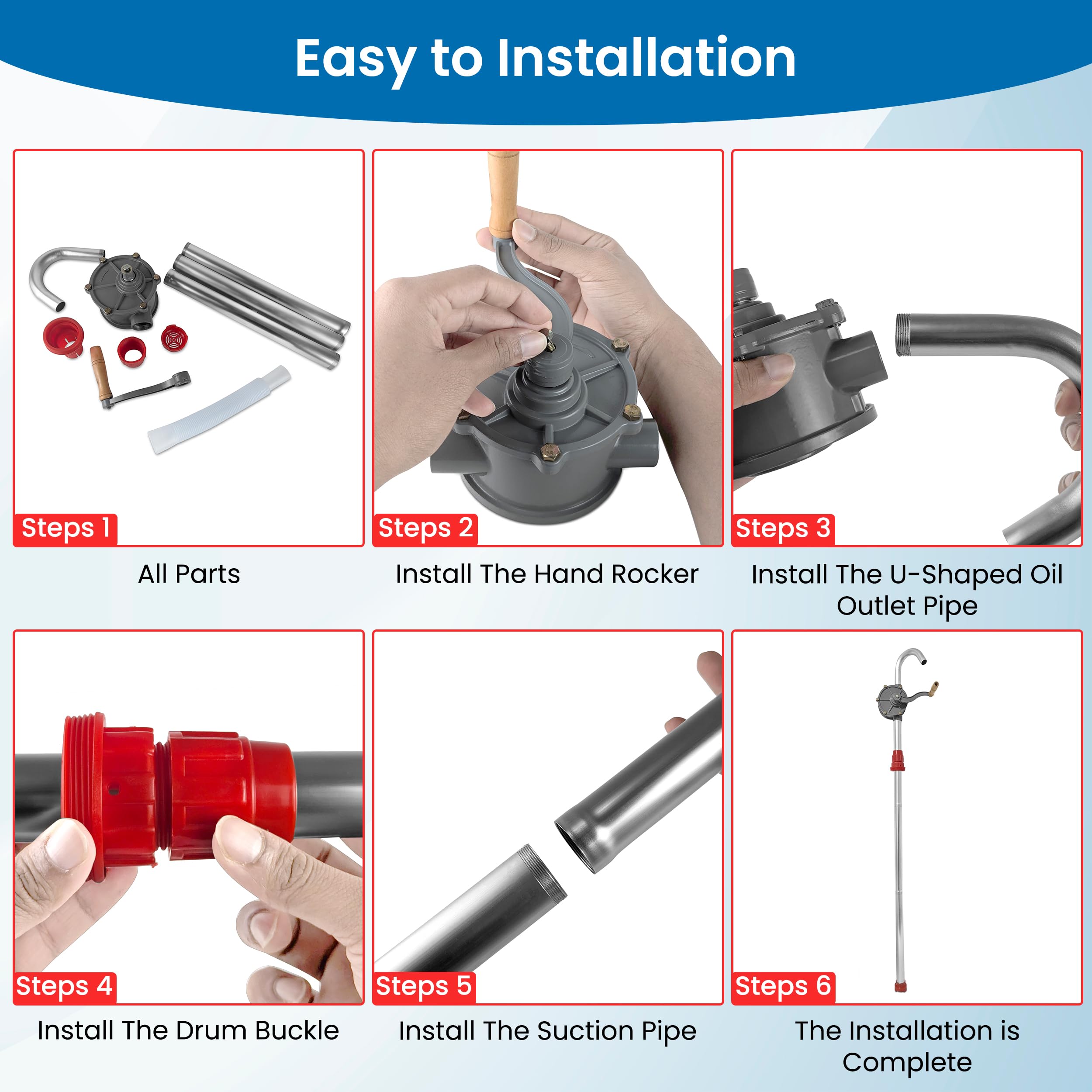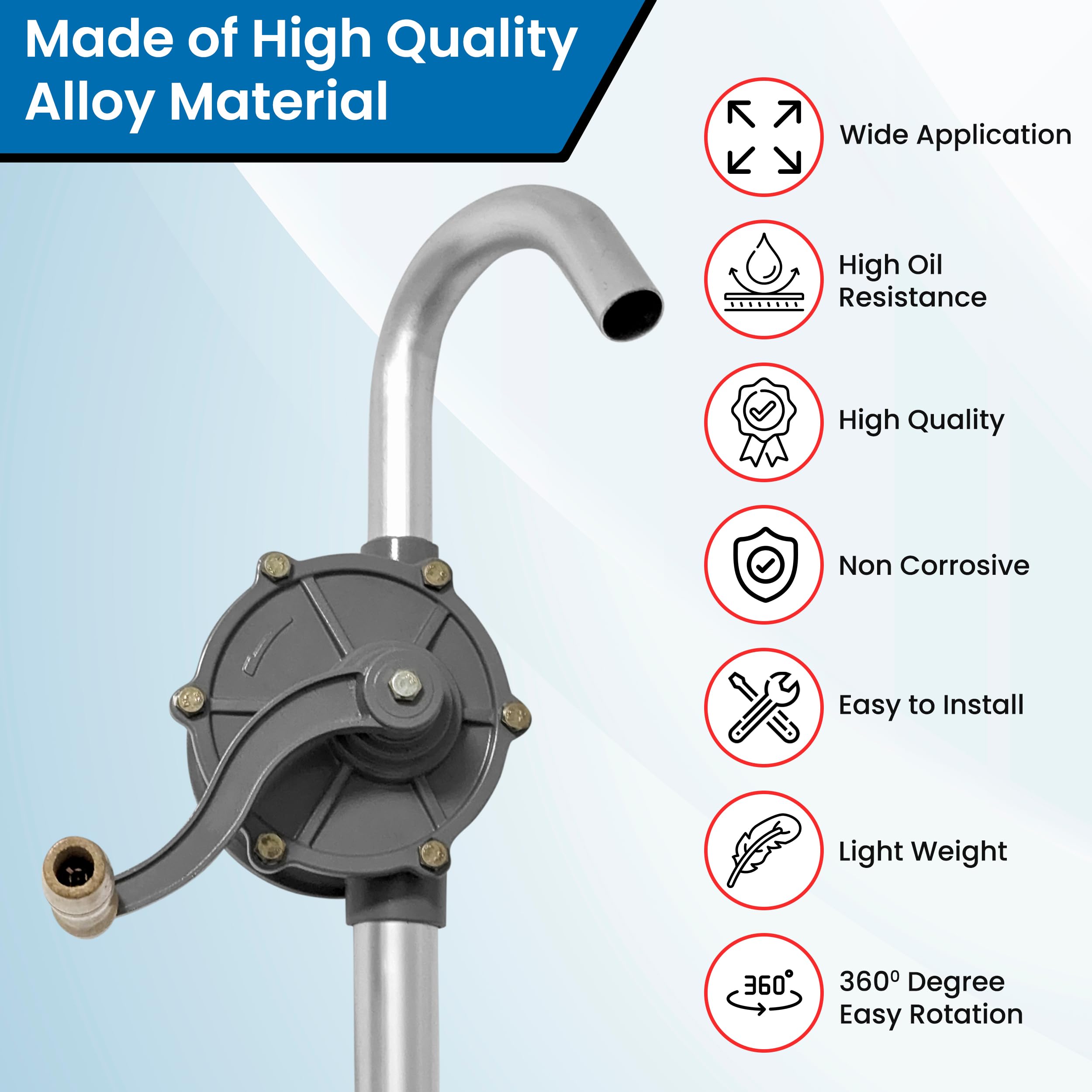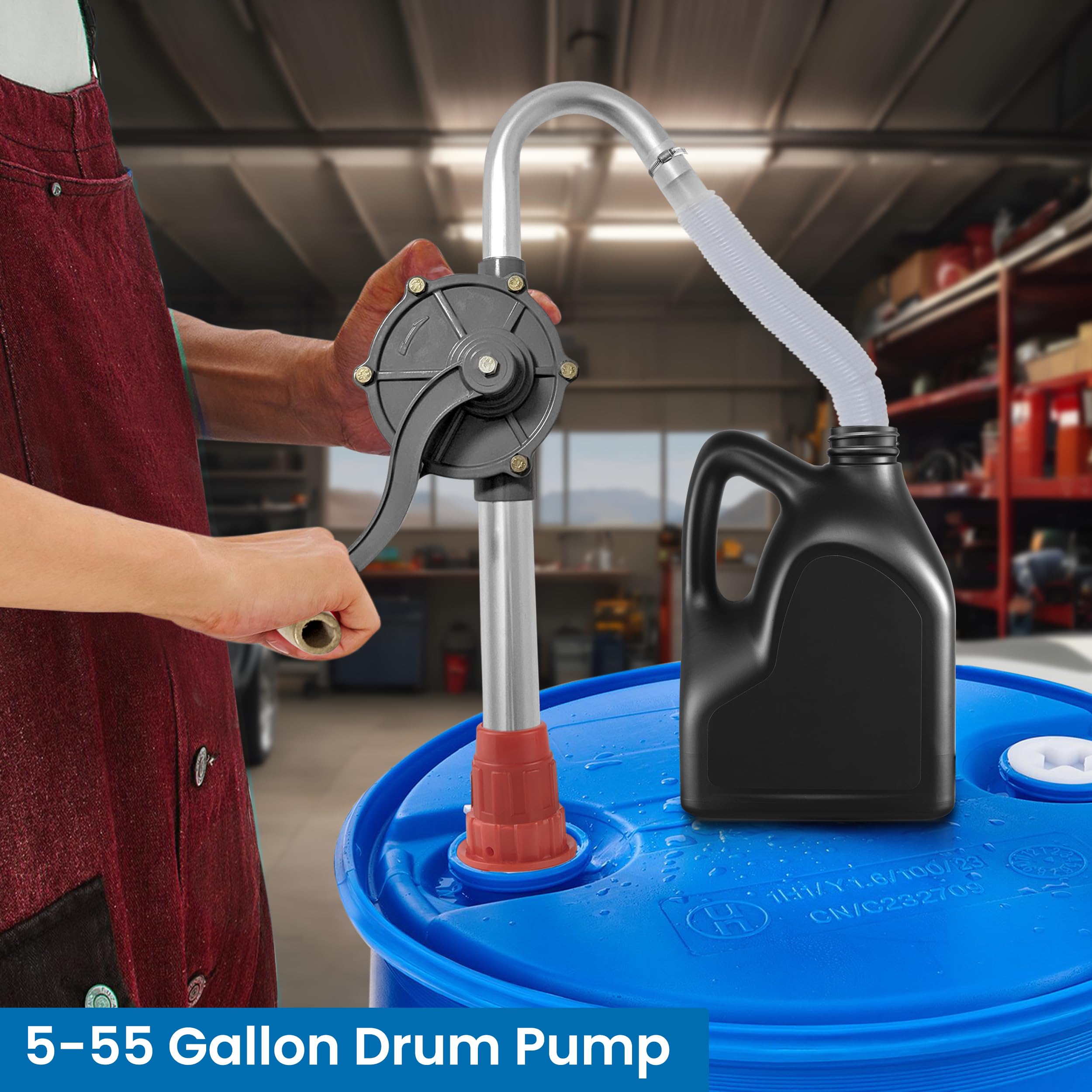Durability - Constructed from high-quality aluminum, the 5-55 gallon hand operated drum pump is built to withstand rigorous use, providing long-lasting performance and reliability for all your fluid transfer needs. Made of high quality alloy material resistant to corrosion.