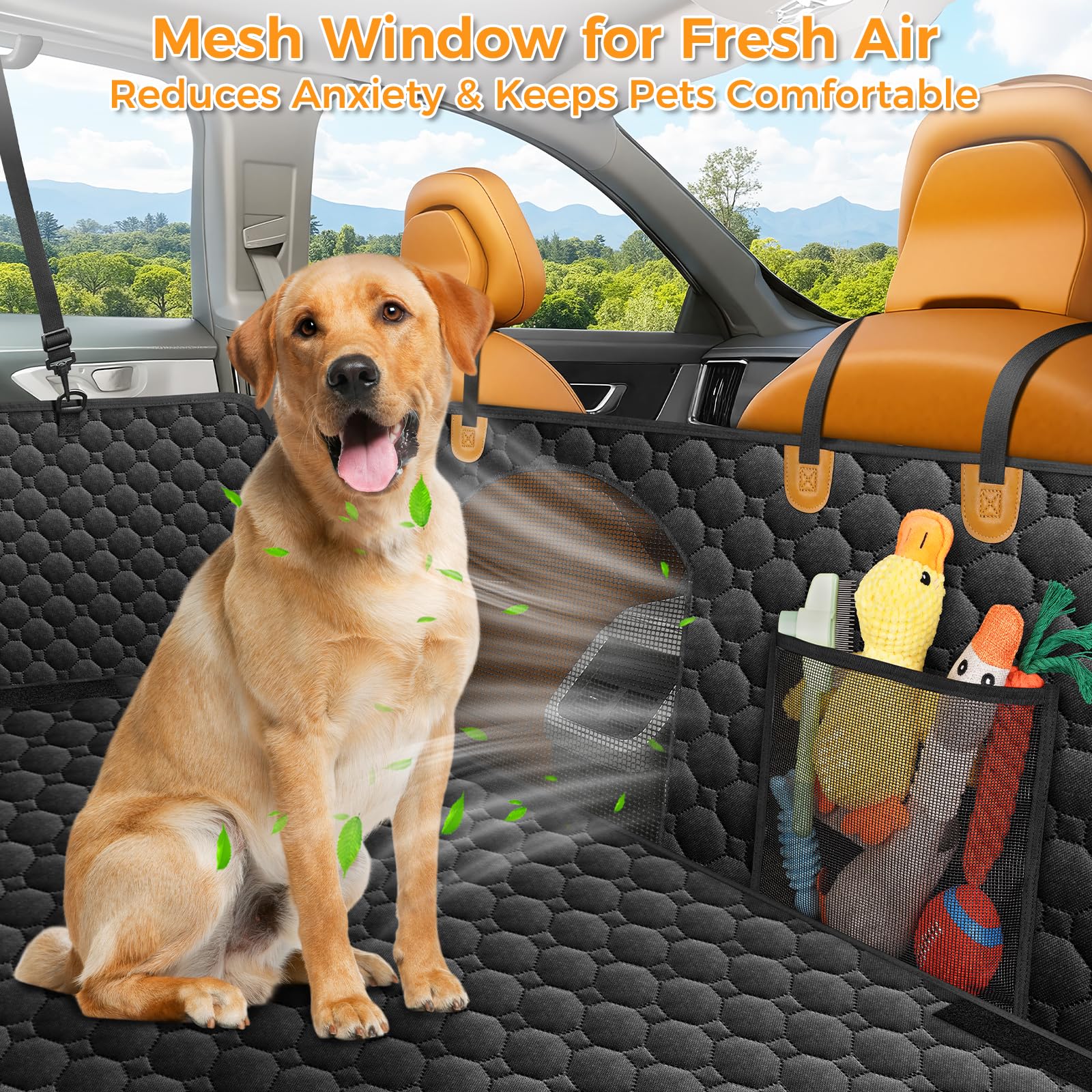 Mesh Window & Storage Pockets: Designed with a visible mesh window, this dog car seat covers improves air circulation and helps reduce pet anxiety by letting your dog see you. Two large pockets keep toys, treats, and essentials organized, making it a practical dog back seat cover and a thoughtful car seat protector for dogs.