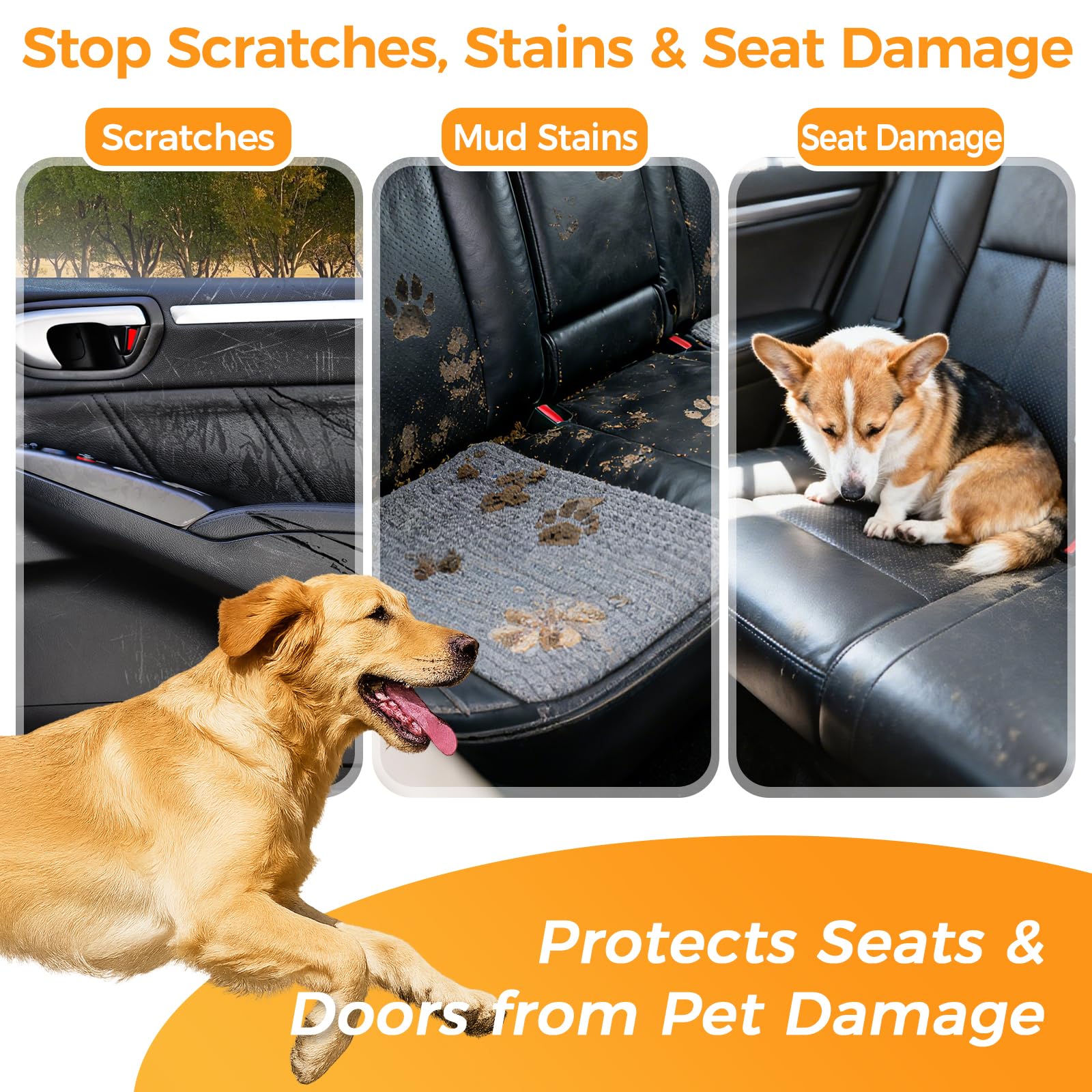 Durable & Waterproof Materials: Made with 600D Oxford fabric and a silicone non-slip base, this dog seat cover is tough, waterproof, and scratch-resistant. Reinforced stitching makes it a dog car seat cover hard bottom you can count on. Easy to clean, this back seat pet cover for dogs saves time after every ride.
