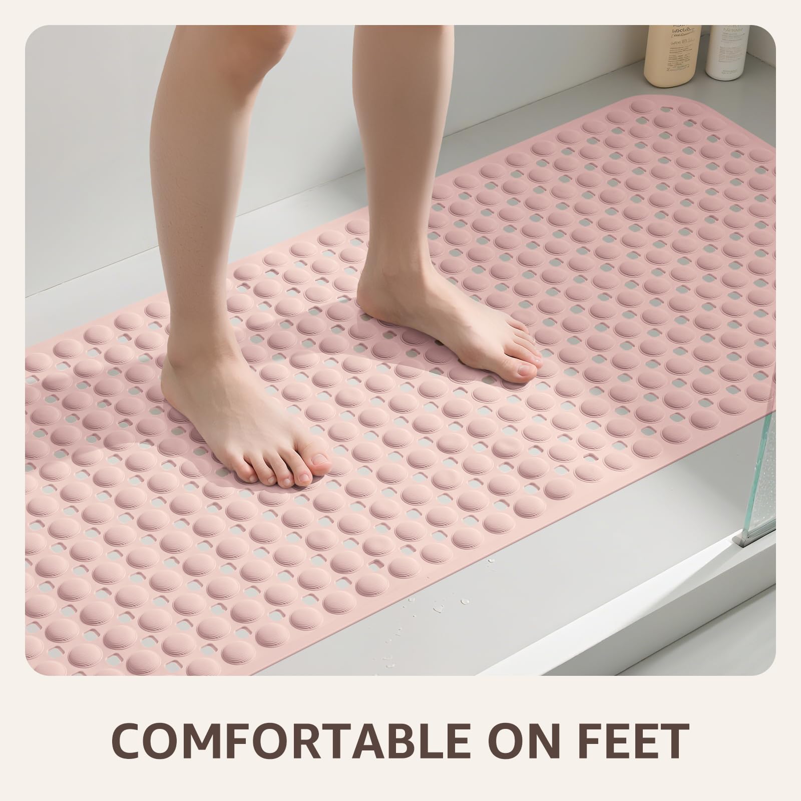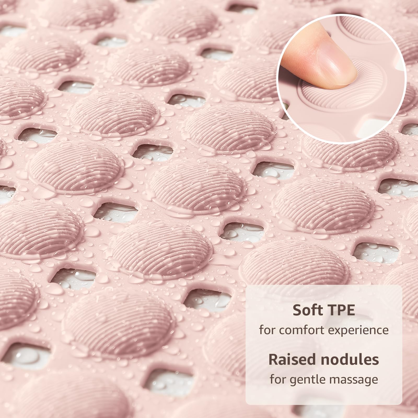 FLEXIBLE TPE Comfort & Durability: Soft yet durable TPE material flexes like a bath mat for tub, with raised nodules for gentle massage underfoot. Designed as a reliable anti-slip shower mat
