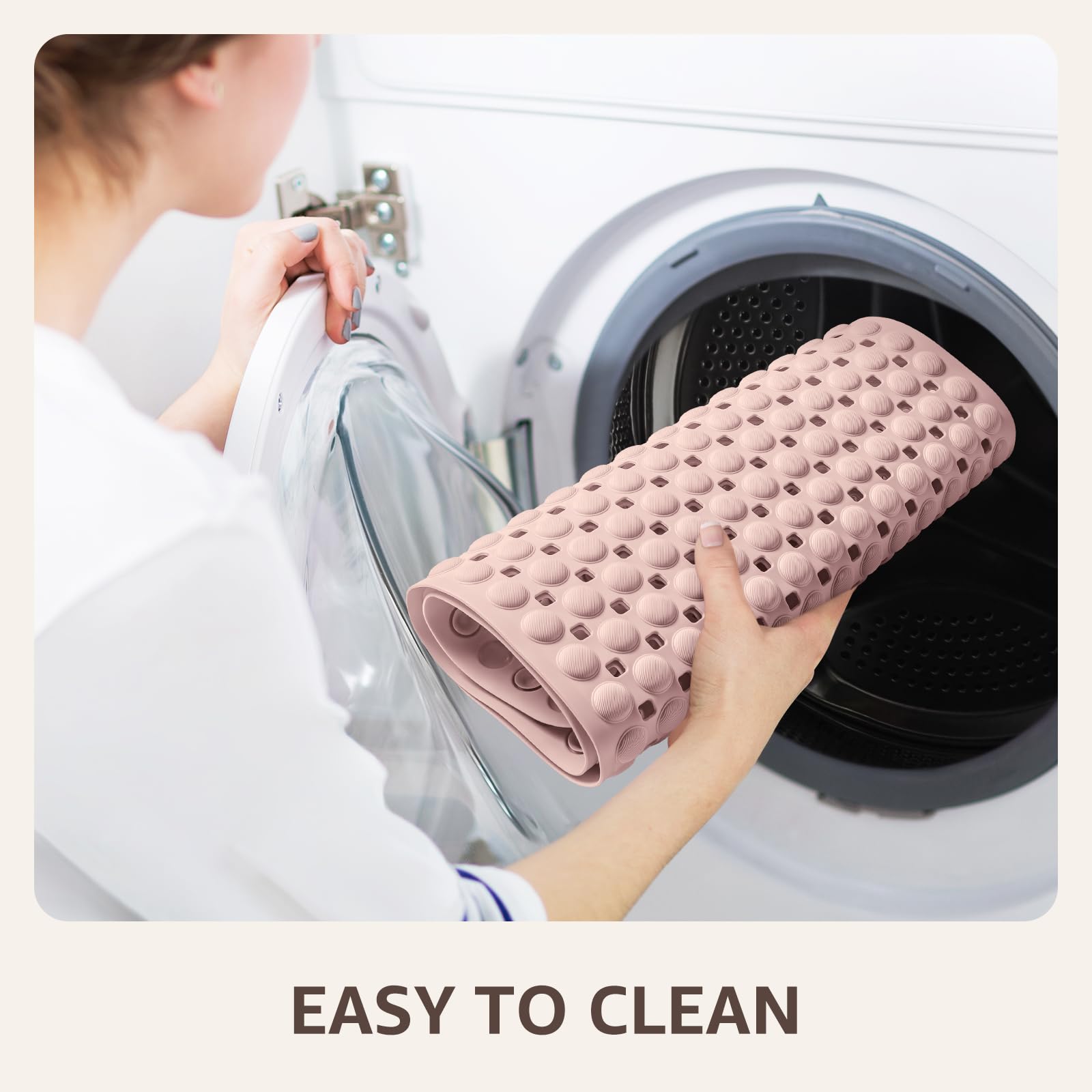 MACHINE WASHABLE Effortless Care: Toss this bathtub mat non slip into any washer. Air-dries completely in 30 mins – zero scrubbing required. (NOTICE: Only suitable for smooth and non-textured surfaces)