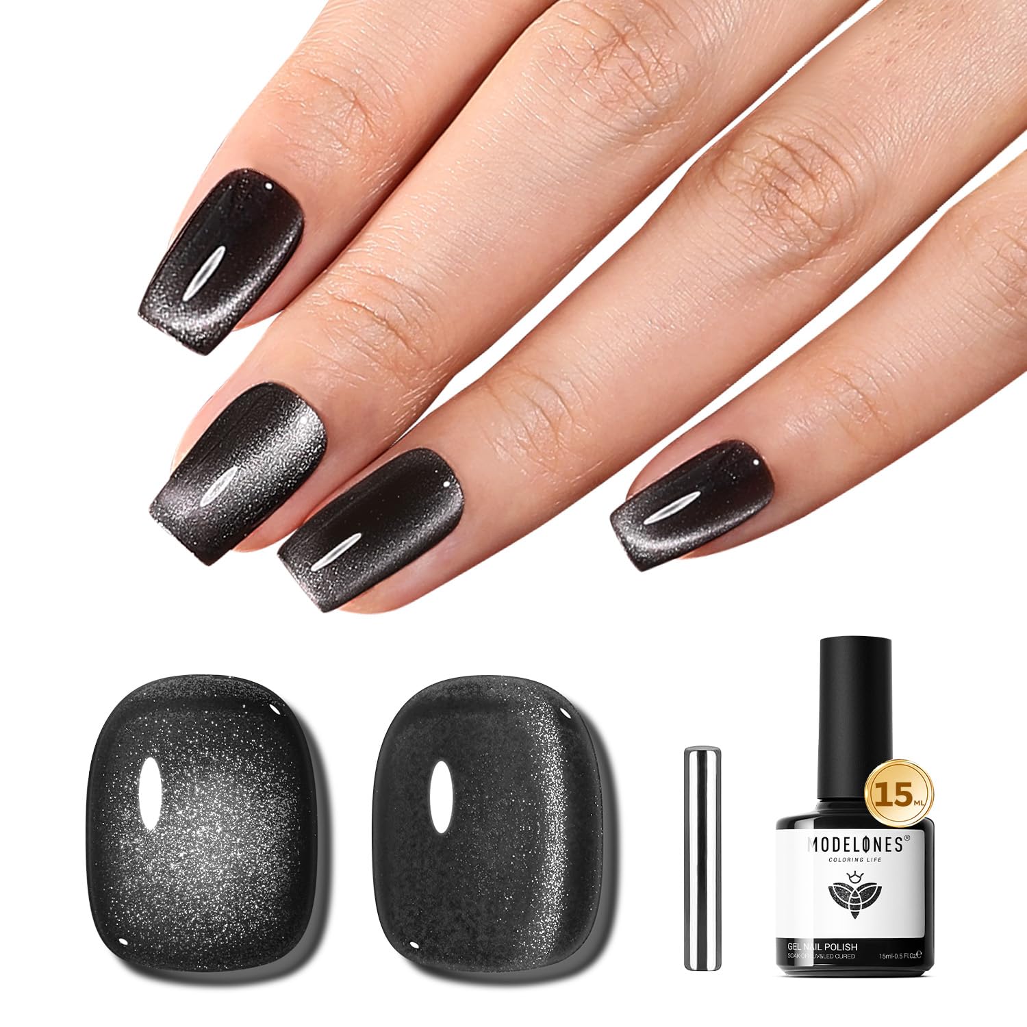 Tips: Hold the magnetic stick 3-5mm above the surface for 5-10 seconds to achieve your desired effect! [ What You Get]: Black Colors of Semi-transparent Holographic Glitter Cat Eye Gel Nail Polish (15 ml/ 0.5 fl. oz each) + 1 Double-Head Magnetic Stick for various cat eye designs. Each shade of Modelones 9D cat eye gel polish is expertly mixed with metallic magnetic glitter powders for a stunning, shiny finish. Different angles create different visual effects. Practice makes perfect!